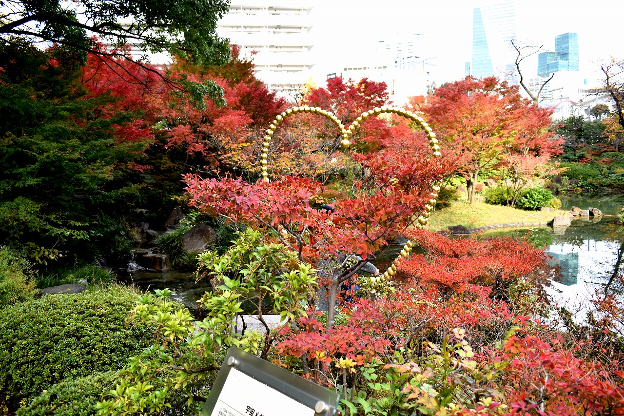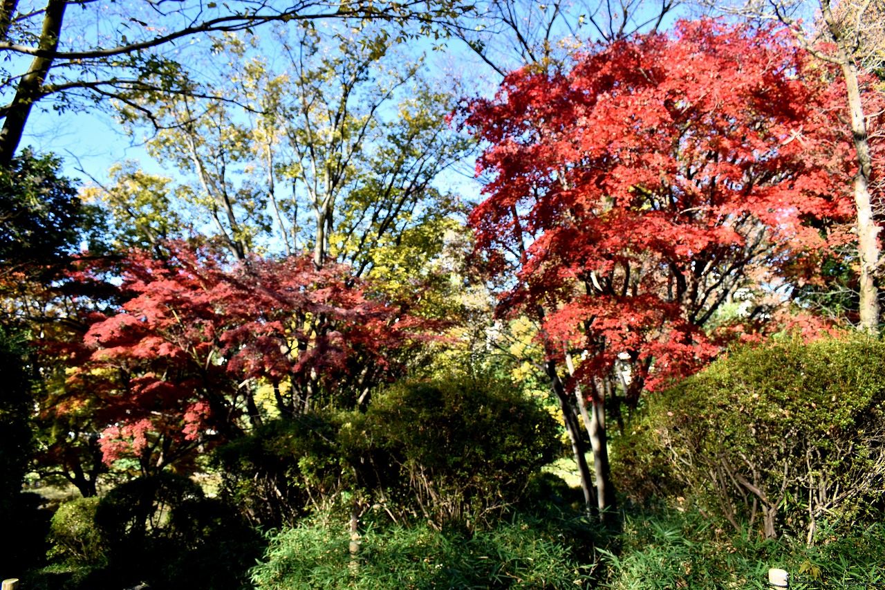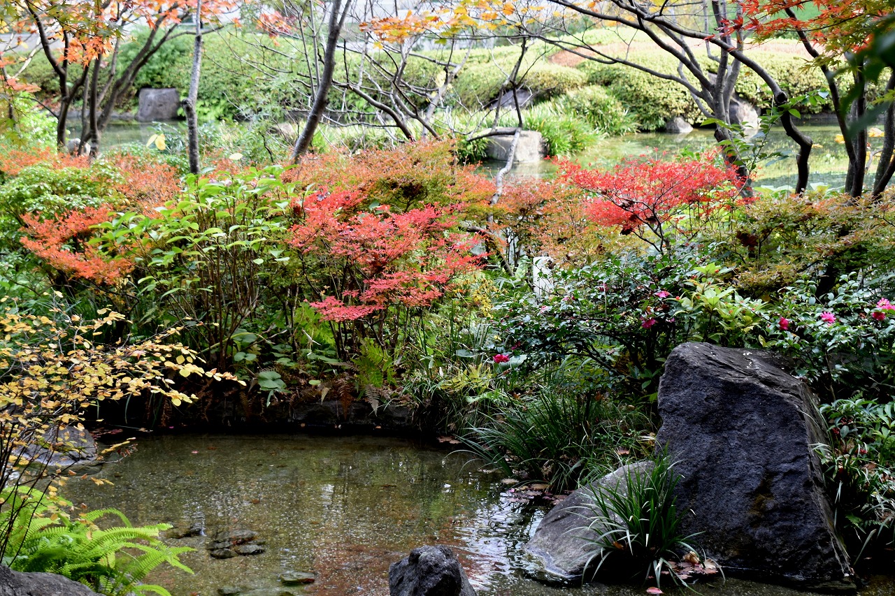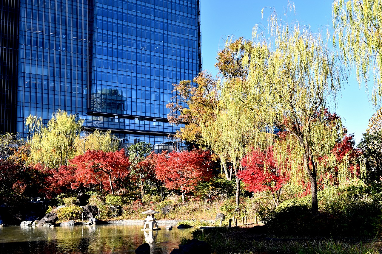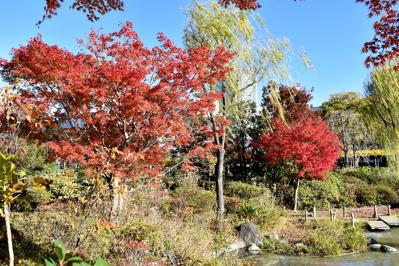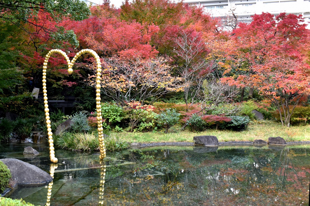 「一言」桧町公園の紅葉が見頃です。池のまわり全体が紅葉していて華やかです。真っ赤なに紅葉している葉は 透明度が増して綺麗です。有栖川公園も丘の上の紅葉が見頃です。毛利庭園は、朝はビルの陰に隠れて 紅葉が良く分かりませんでしたが、お昼過ぎに行くと紅葉に日が当たり庭全体が紅葉しており華やかです。