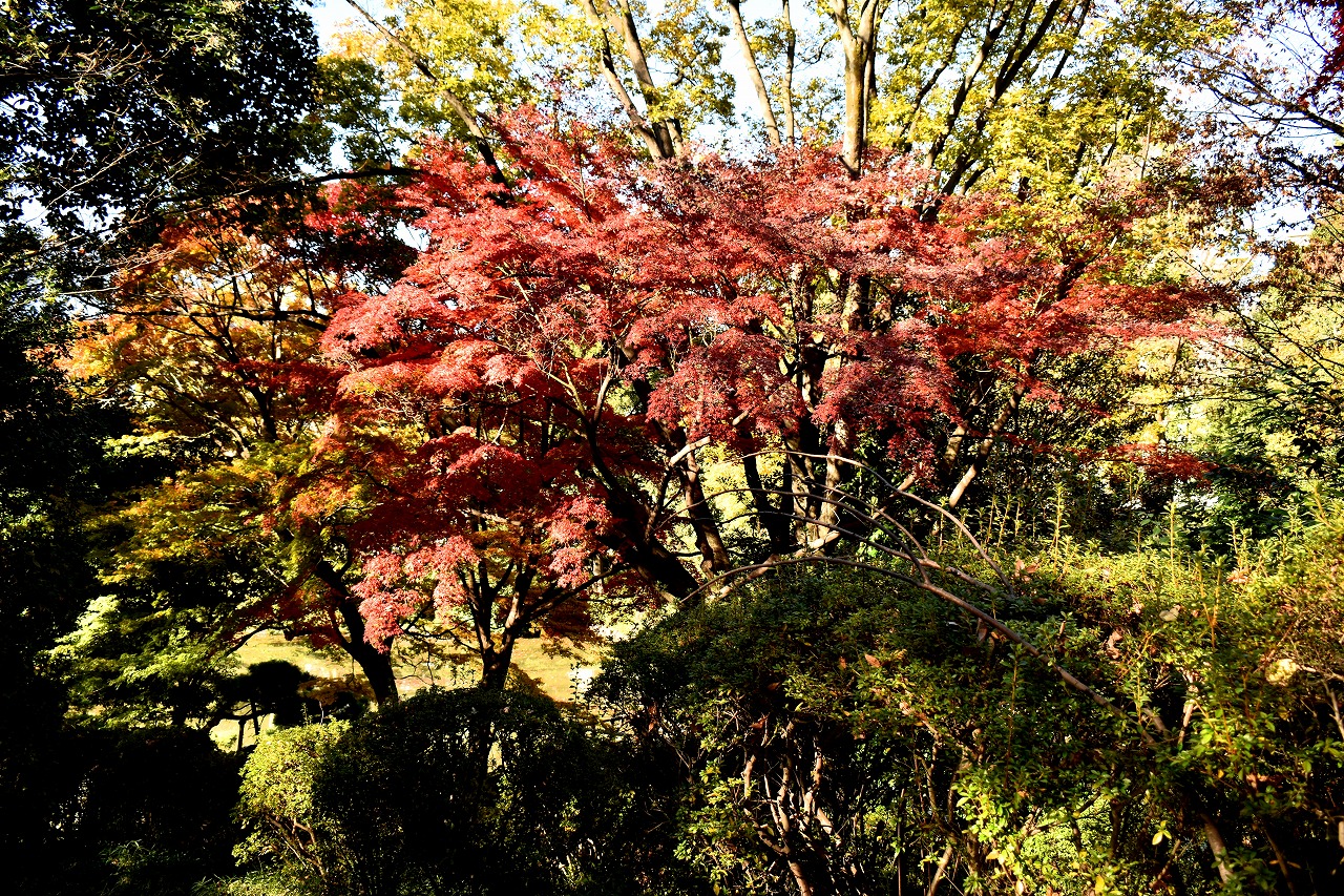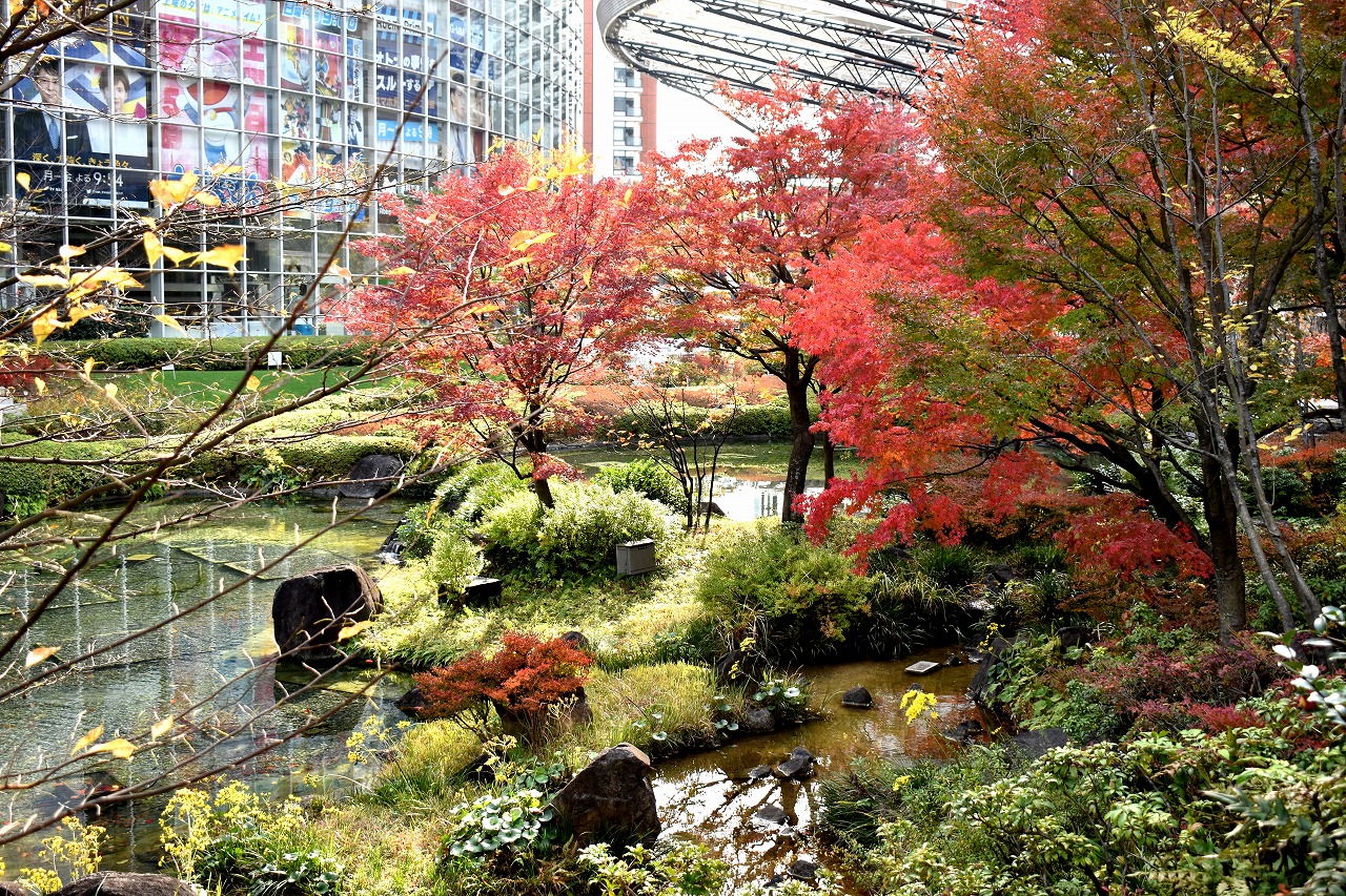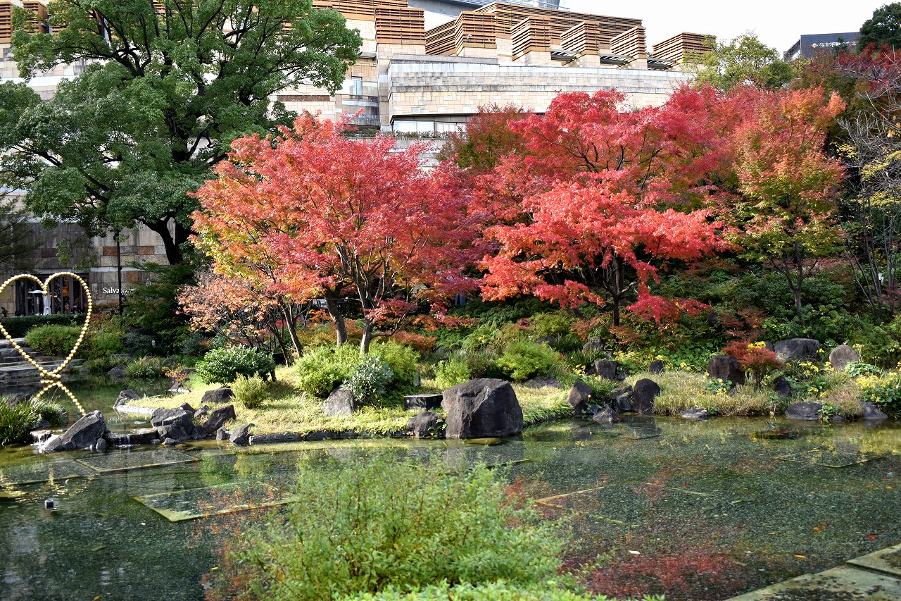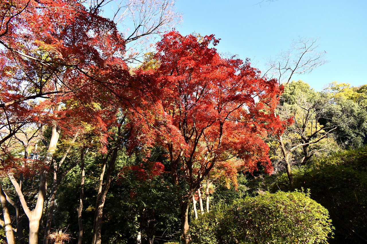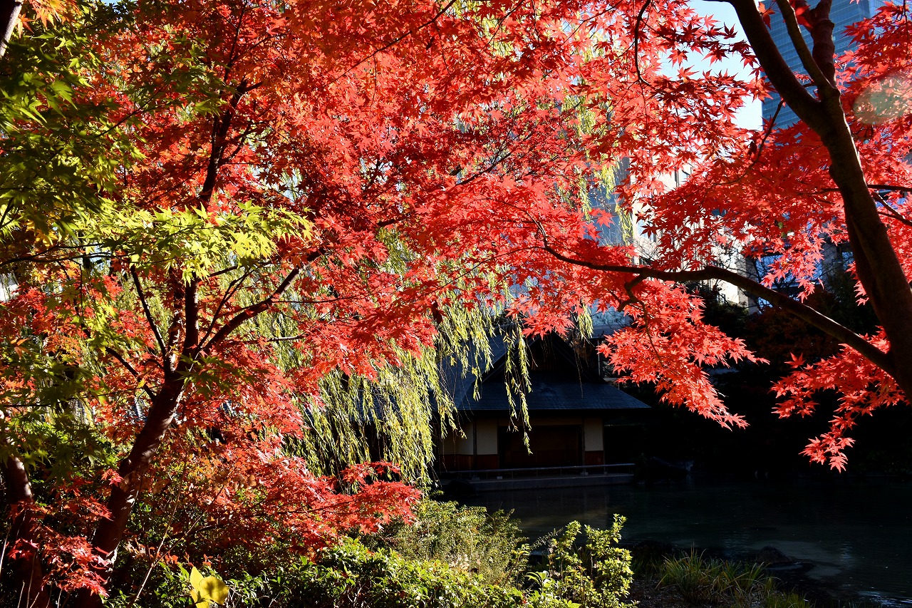 「一言」桧町公園の紅葉が見頃です。池のまわり全体が紅葉していて華やかです。真っ赤なに紅葉している葉は 透明度が増して綺麗です。有栖川公園も丘の上の紅葉が見頃です。毛利庭園は、朝はビルの陰に隠れて 紅葉が良く分かりませんでしたが、お昼過ぎに行くと紅葉に日が当たり庭全体が紅葉しており華やかです。