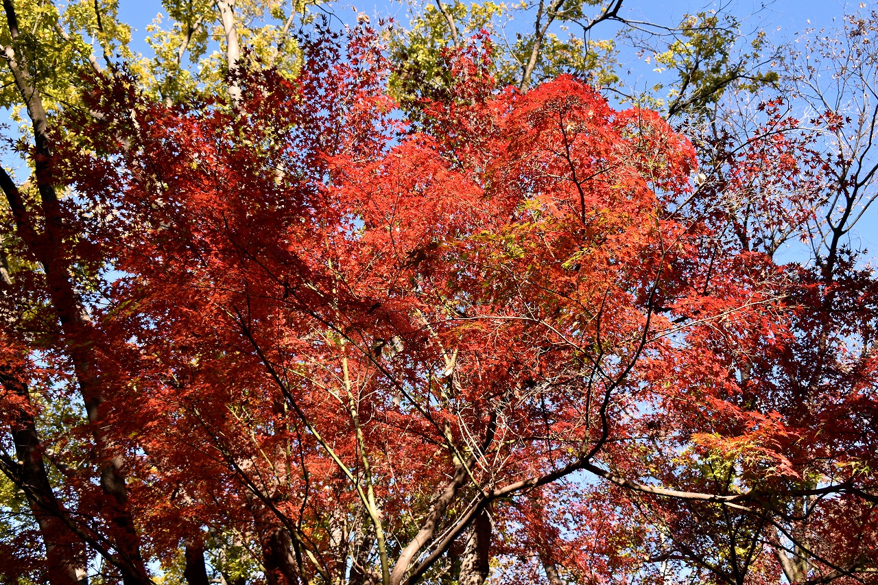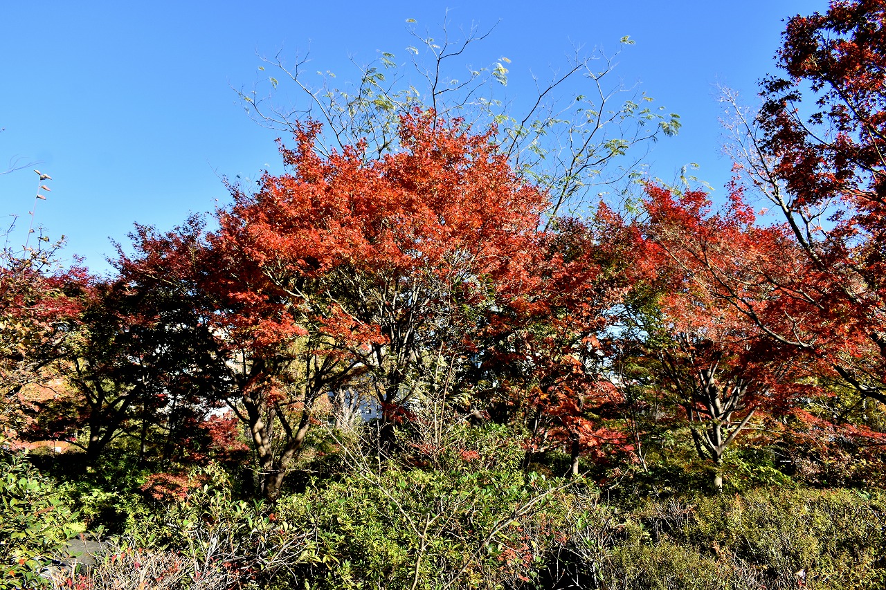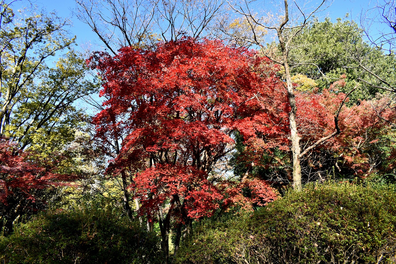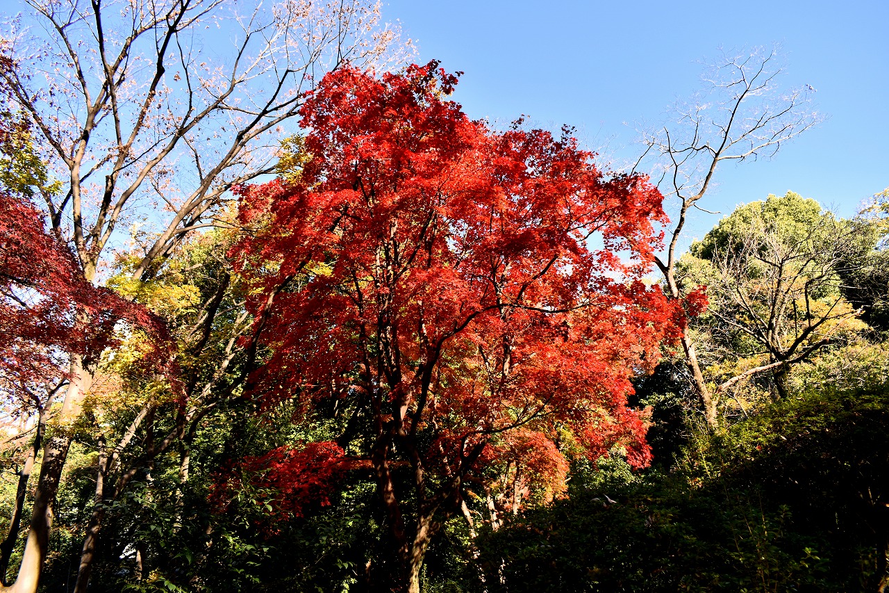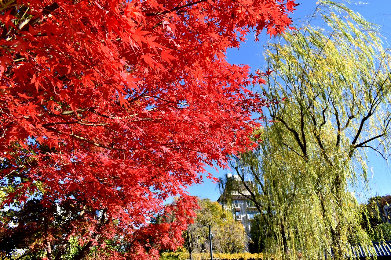 「一言」桧町公園の紅葉が見頃です。池のまわり全体が紅葉していて華やかです。真っ赤なに紅葉している葉は 透明度が増して綺麗です。有栖川公園も丘の上の紅葉が見頃です。毛利庭園は、朝はビルの陰に隠れて 紅葉が良く分かりませんでしたが、お昼過ぎに行くと紅葉に日が当たり庭全体が紅葉しており華やかです。