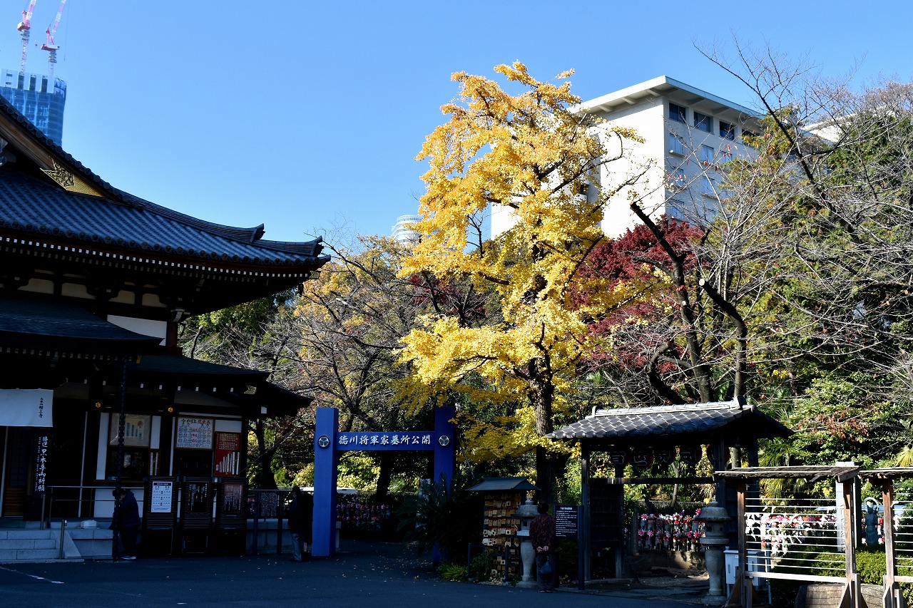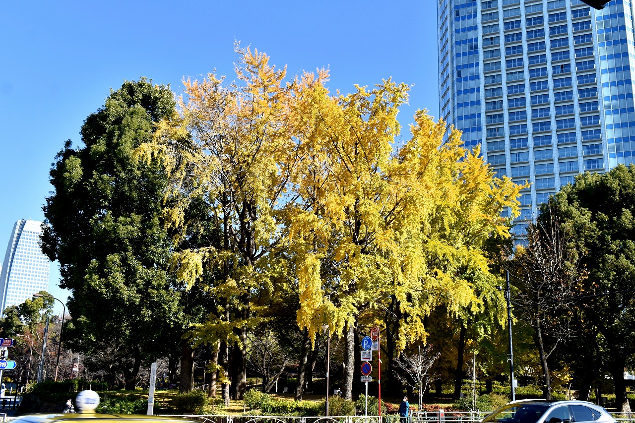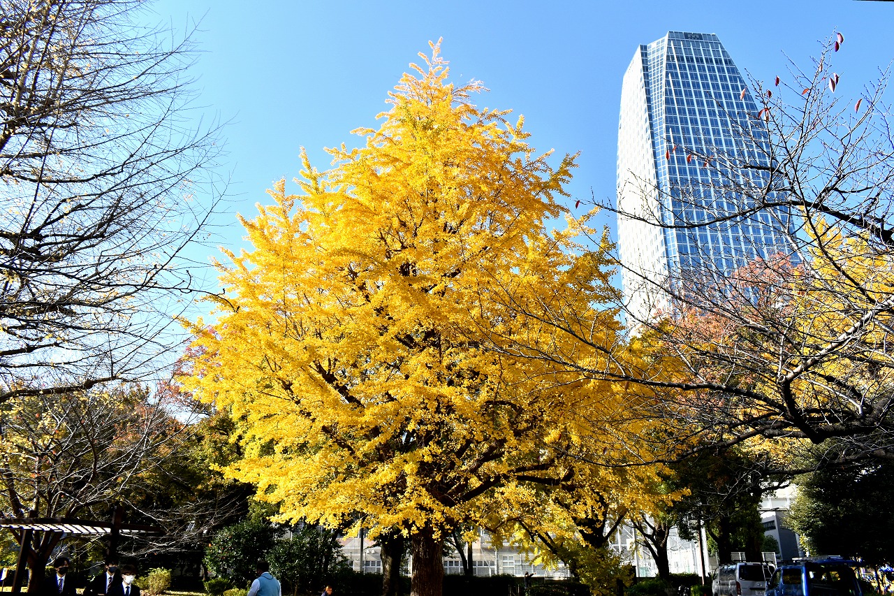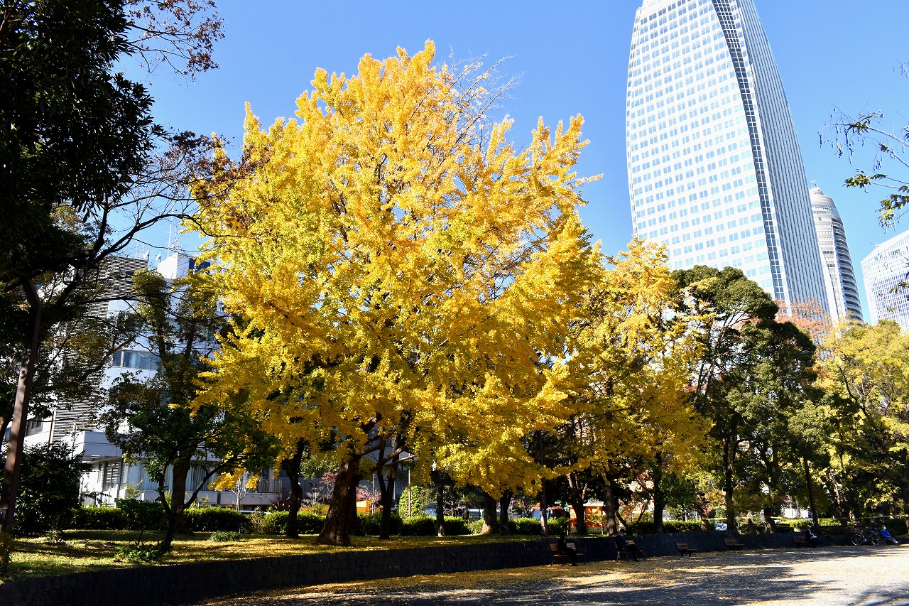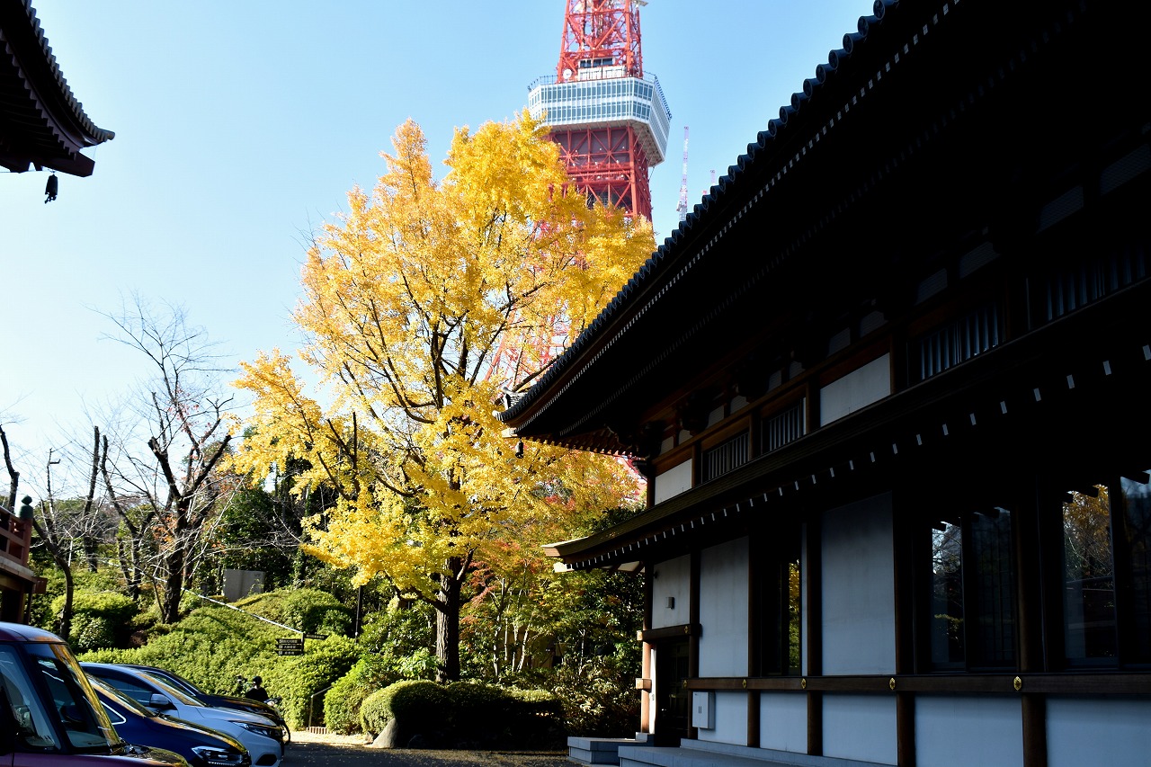 「一言」芝公園の大きなイチョウの木が黄葉して綺麗になっています。イチョウの葉が透けるような黄色になり華やかです。 旧芝離宮の紅葉も進んでいます。十月桜が満開になっています。鴨やサギが池に飛んできています。 増上寺の紅葉が綺麗です。本堂の前や裏、増上寺会館にあるモミジが真っ赤に紅葉しています。