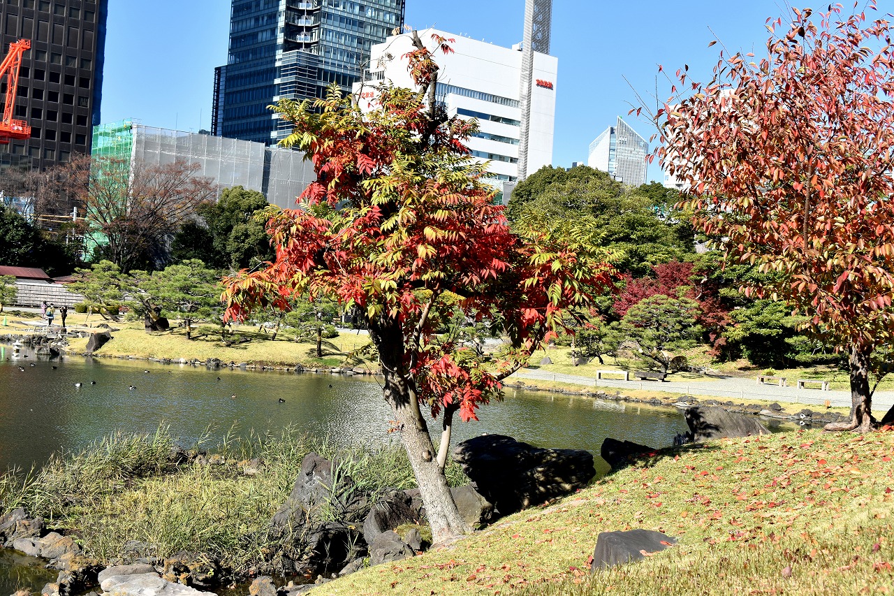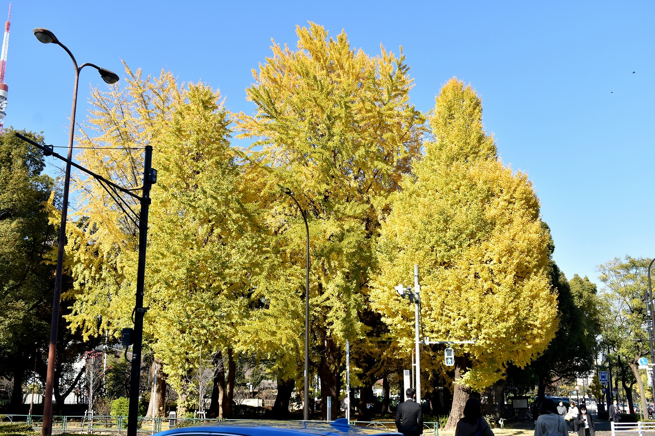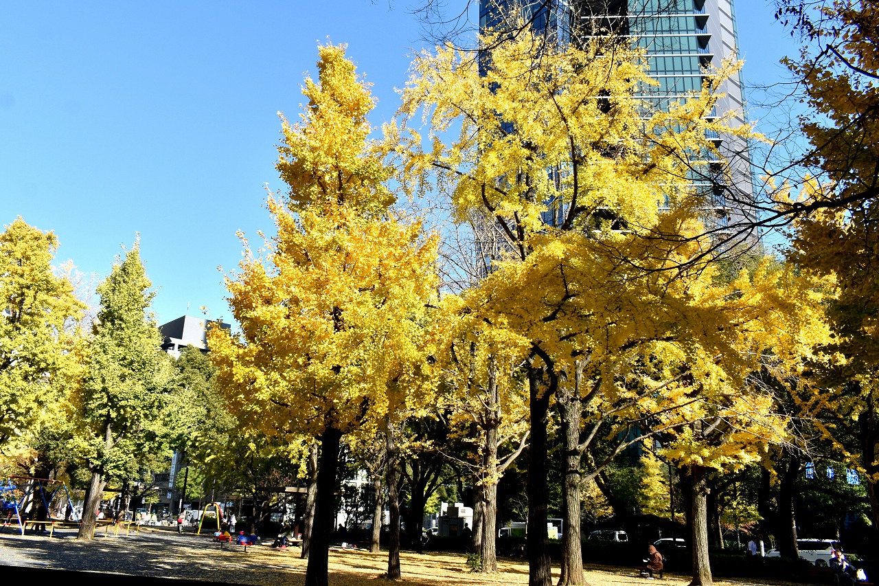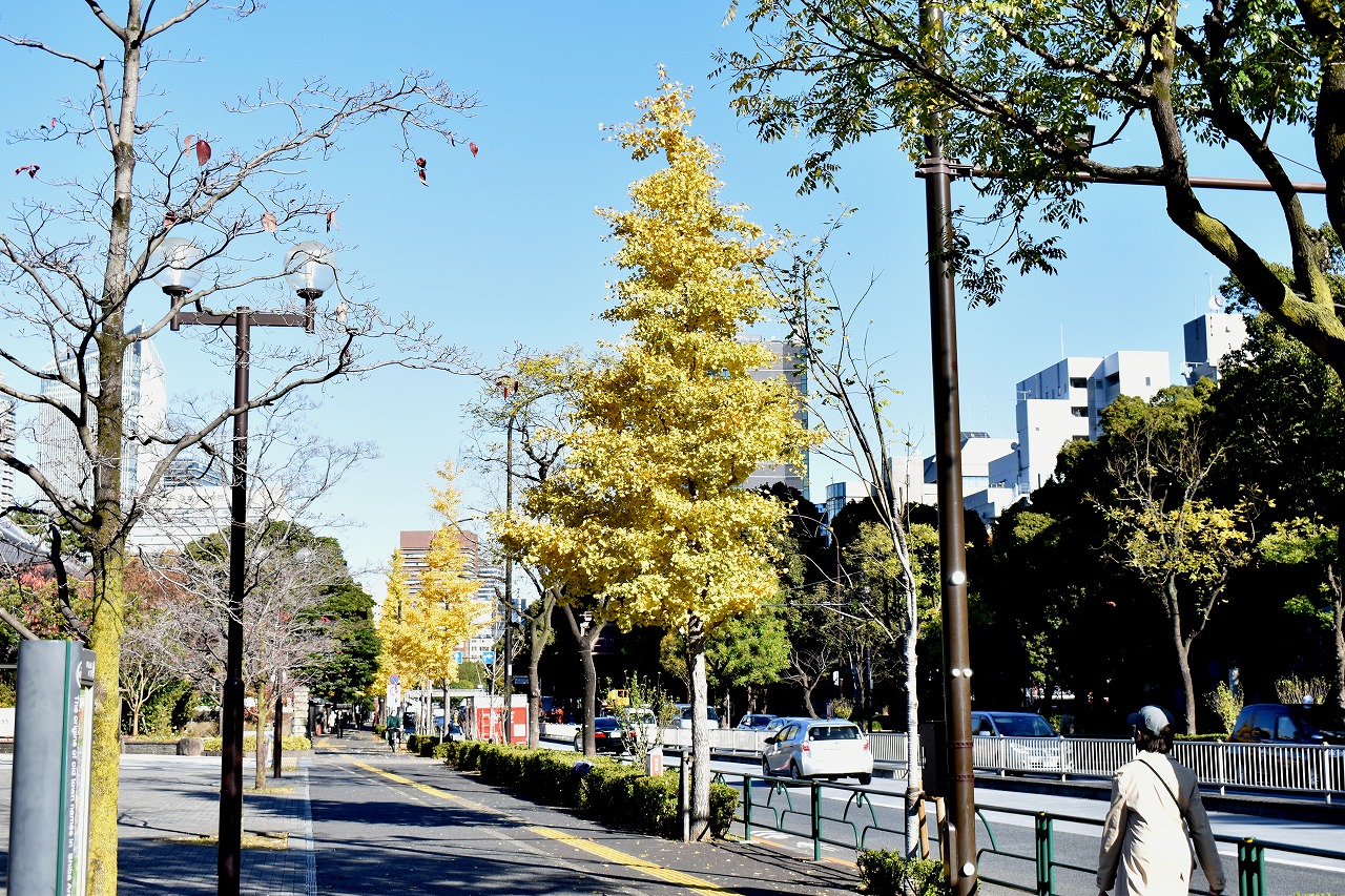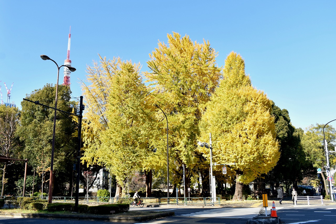 「一言」芝公園の大きなイチョウの木が黄葉して綺麗になっています。イチョウの葉が透けるような黄色になり華やかです。 旧芝離宮の紅葉も進んでいます。十月桜が満開になっています。鴨やサギが池に飛んできています。 増上寺の紅葉が綺麗です。本堂の前や裏、増上寺会館にあるモミジが真っ赤に紅葉しています。