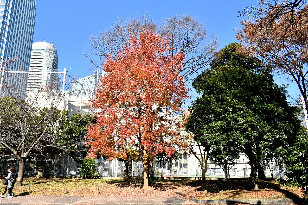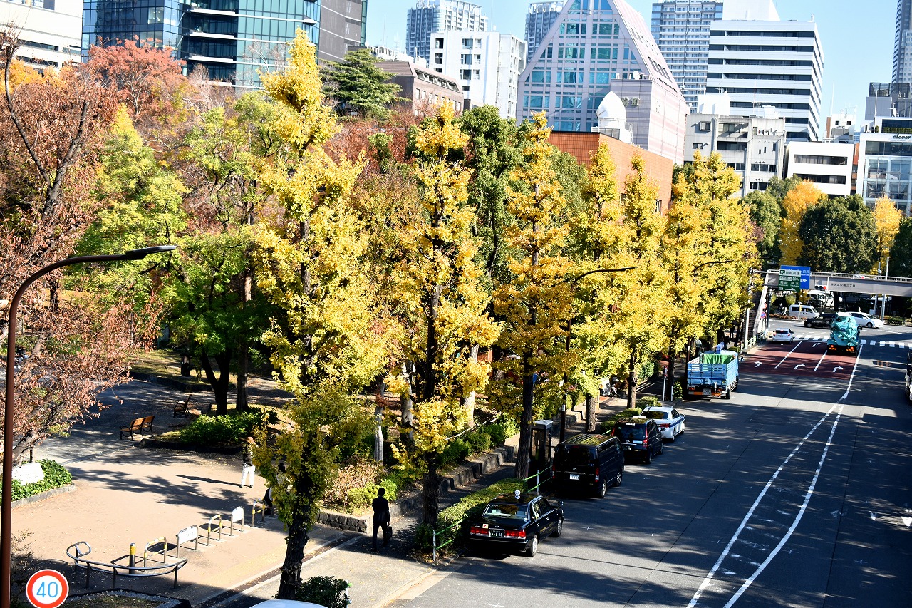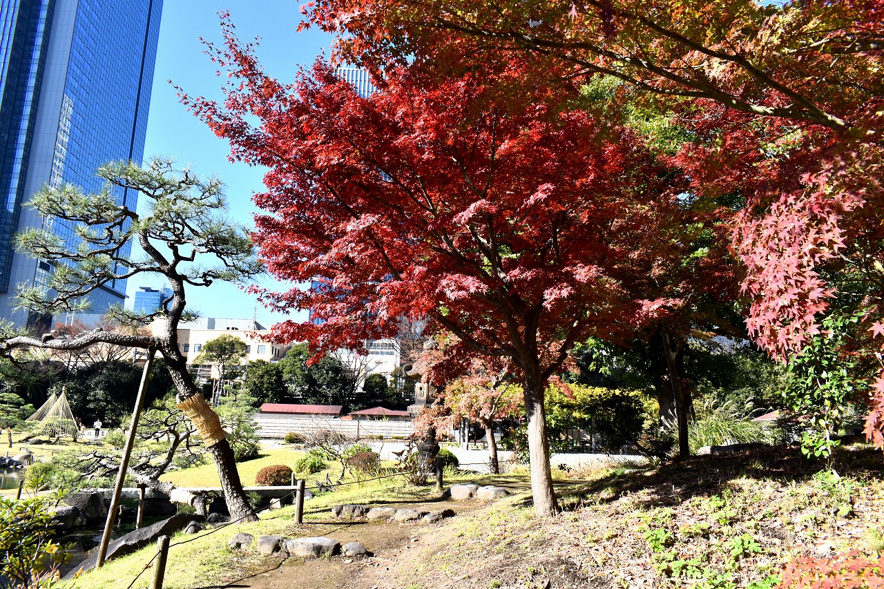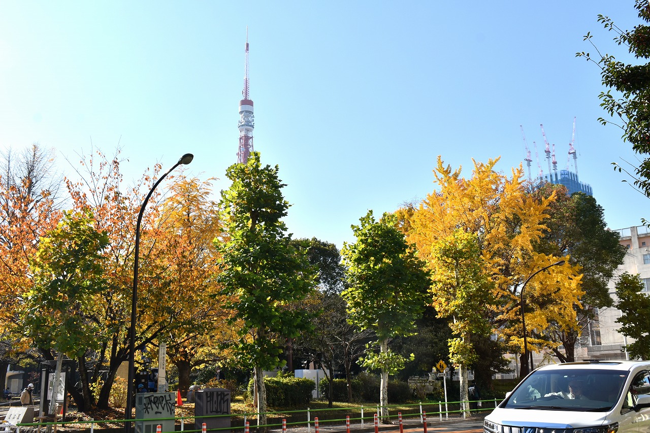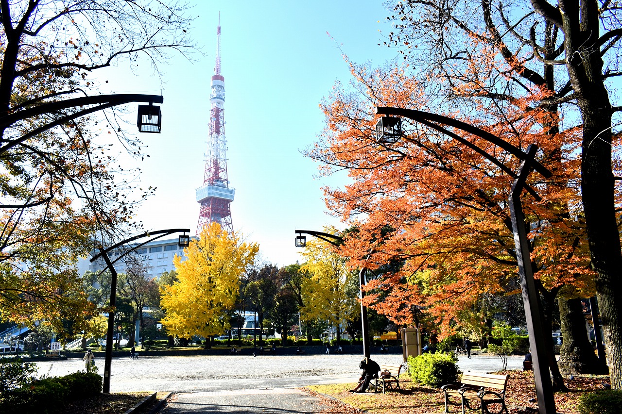 「一言」芝公園の大きなイチョウの木が黄葉して綺麗になっています。イチョウの葉が透けるような黄色になり華やかです。 旧芝離宮の紅葉も進んでいます。十月桜が満開になっています。鴨やサギが池に飛んできています。 増上寺の紅葉が綺麗です。本堂の前や裏、増上寺会館にあるモミジが真っ赤に紅葉しています。