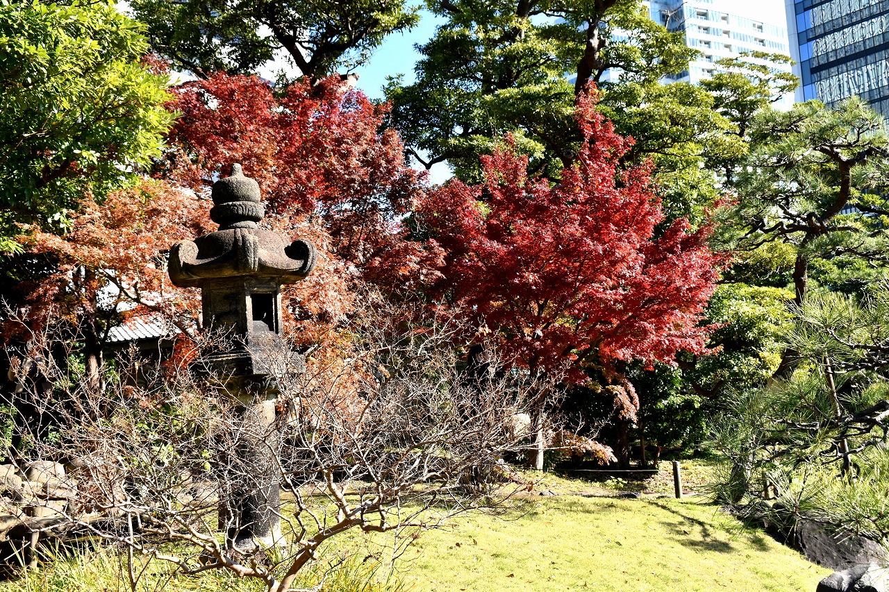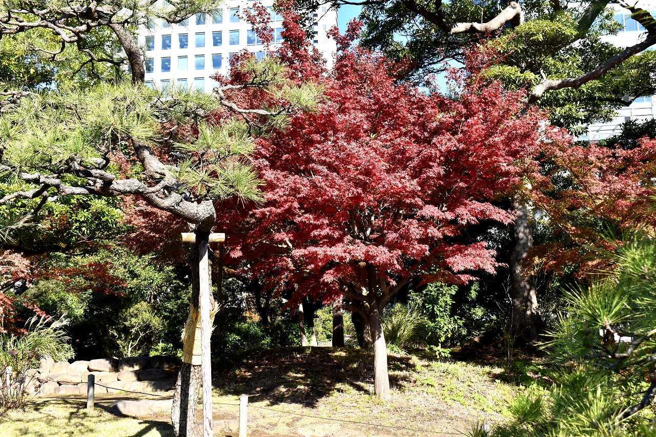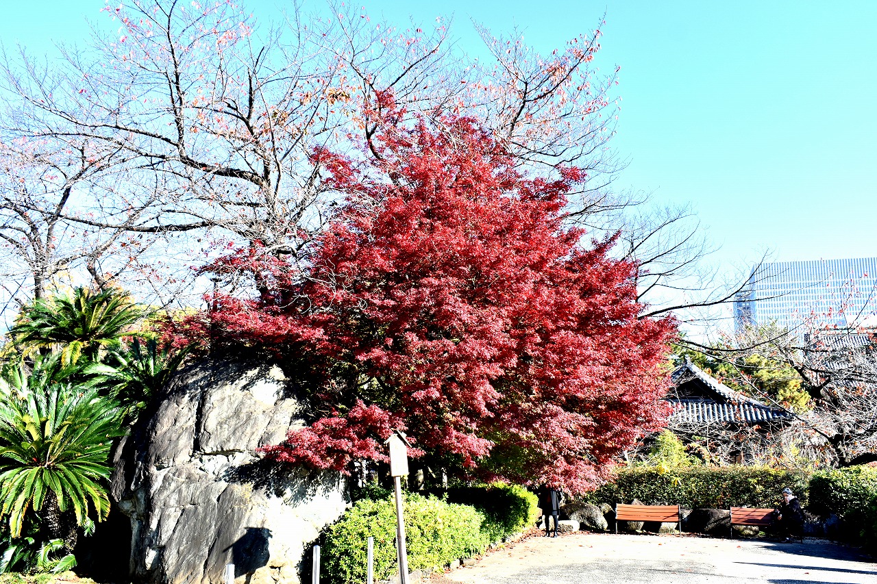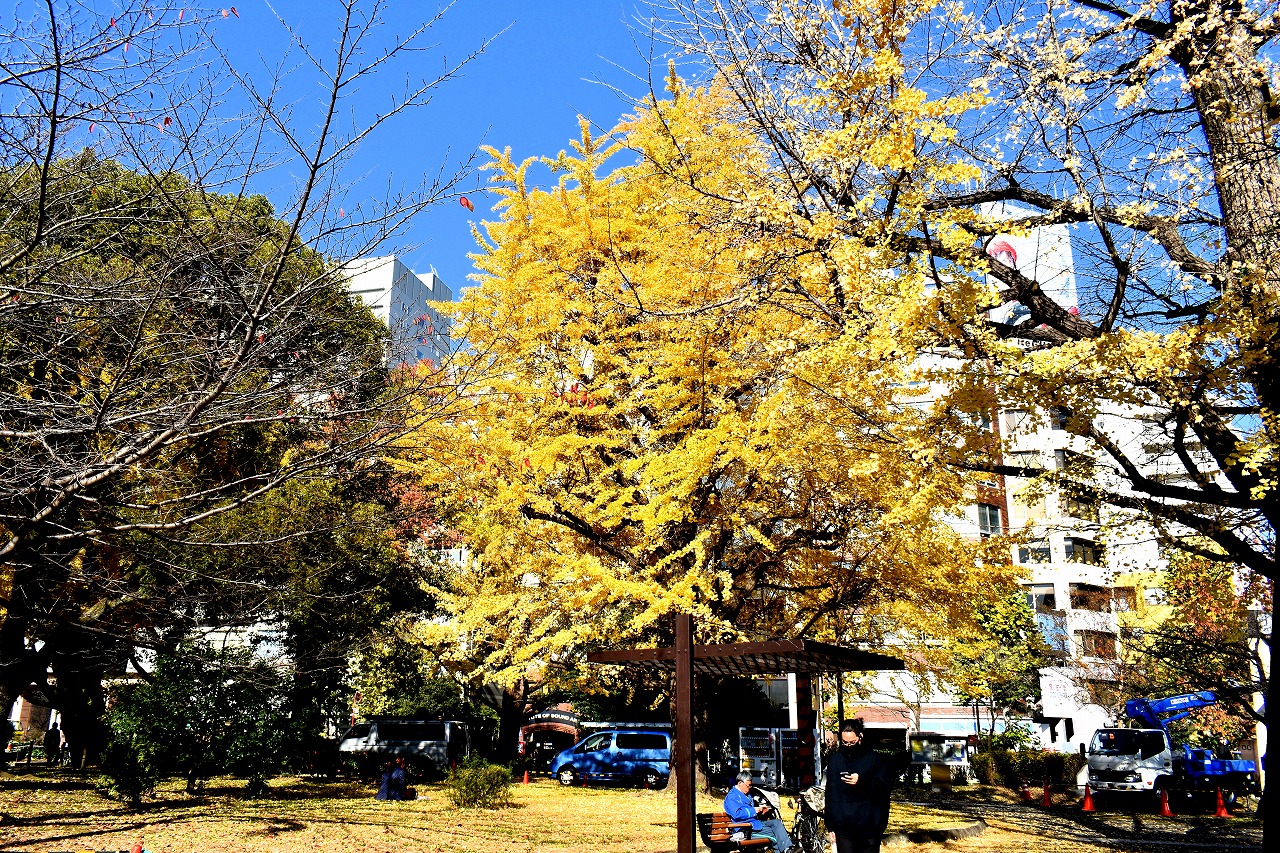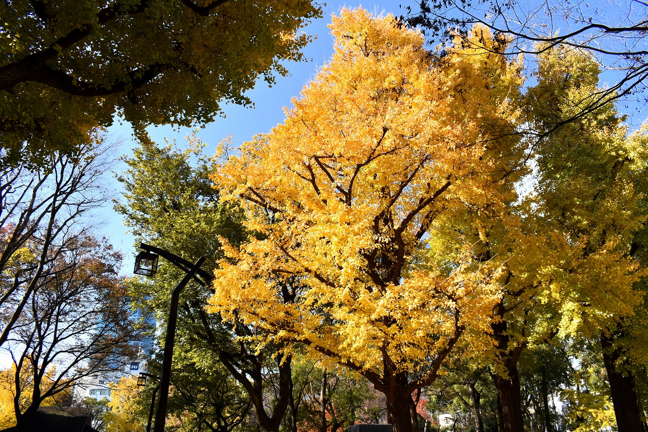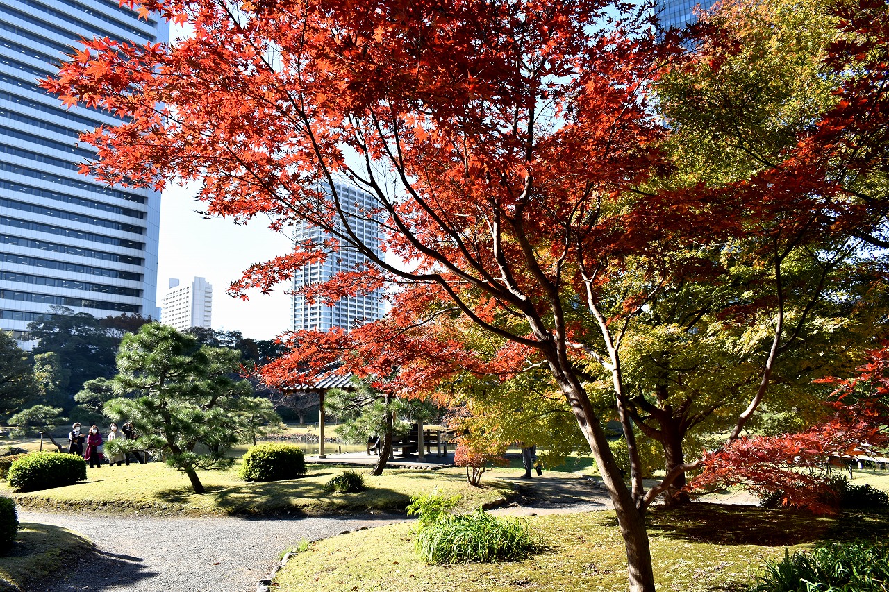 「一言」芝公園の大きなイチョウの木が黄葉して綺麗になっています。イチョウの葉が透けるような黄色になり華やかです。 旧芝離宮の紅葉も進んでいます。十月桜が満開になっています。鴨やサギが池に飛んできています。 増上寺の紅葉が綺麗です。本堂の前や裏、増上寺会館にあるモミジが真っ赤に紅葉しています。