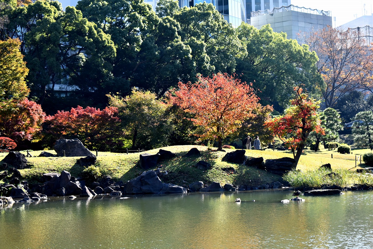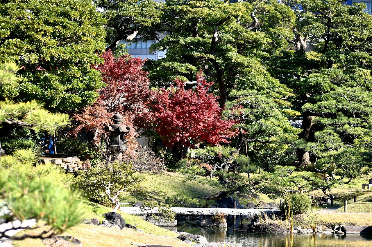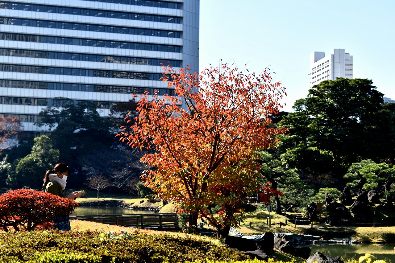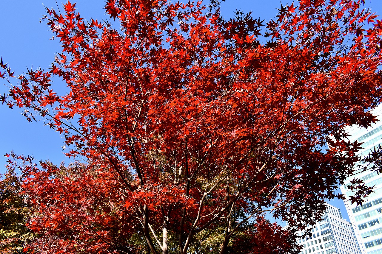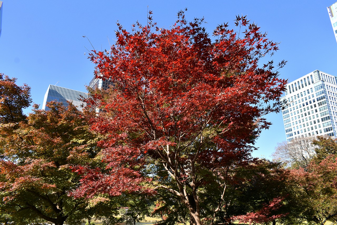 「一言」芝公園の大きなイチョウの木が黄葉して綺麗になっています。イチョウの葉が透けるような黄色になり華やかです。 旧芝離宮の紅葉も進んでいます。十月桜が満開になっています。鴨やサギが池に飛んできています。 増上寺の紅葉が綺麗です。本堂の前や裏、増上寺会館にあるモミジが真っ赤に紅葉しています。
