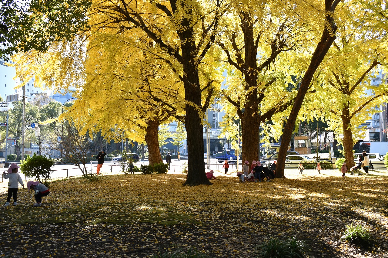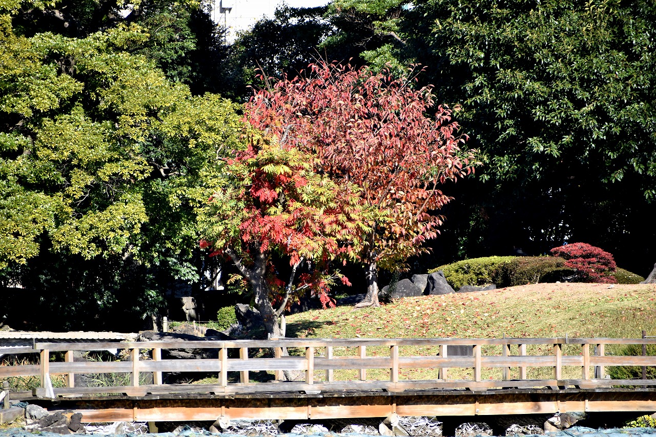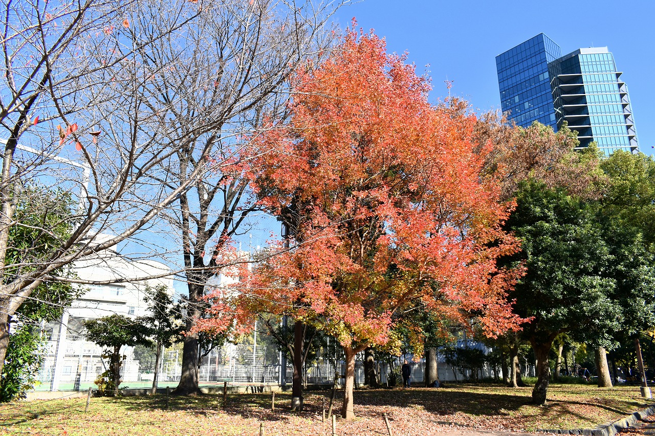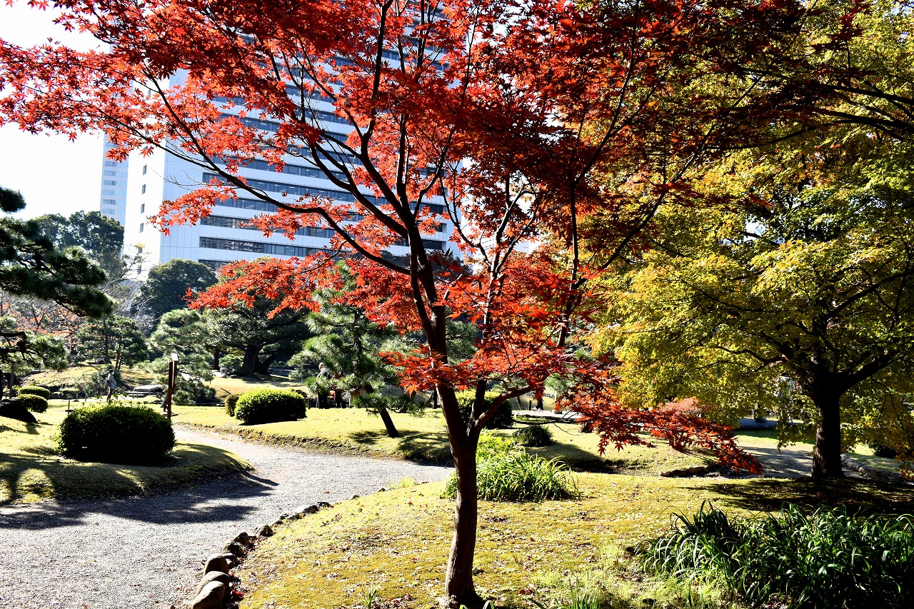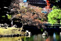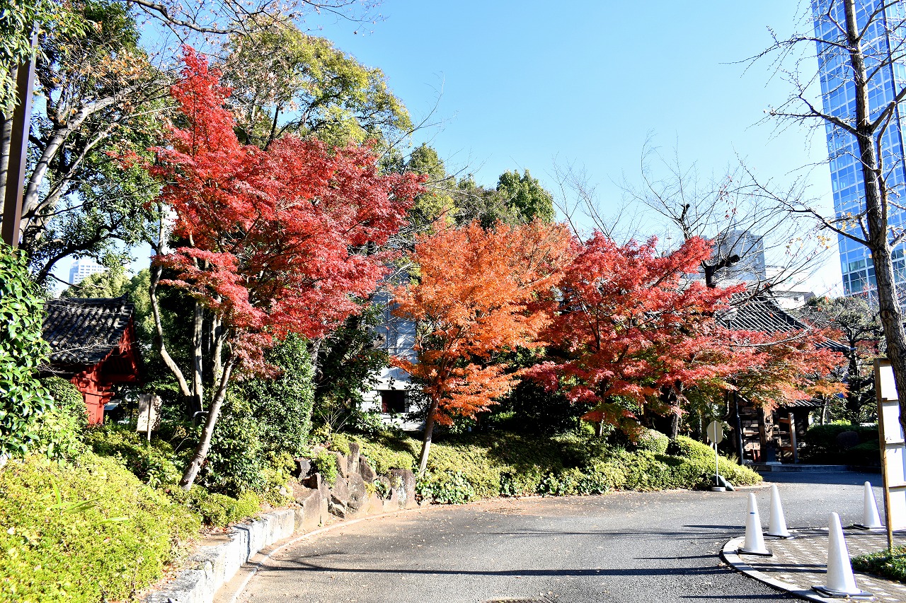 「一言」芝公園の大きなイチョウの木が黄葉して綺麗になっています。イチョウの葉が透けるような黄色になり華やかです。 旧芝離宮の紅葉も進んでいます。十月桜が満開になっています。鴨やサギが池に飛んできています。 増上寺の紅葉が綺麗です。本堂の前や裏、増上寺会館にあるモミジが真っ赤に紅葉しています。