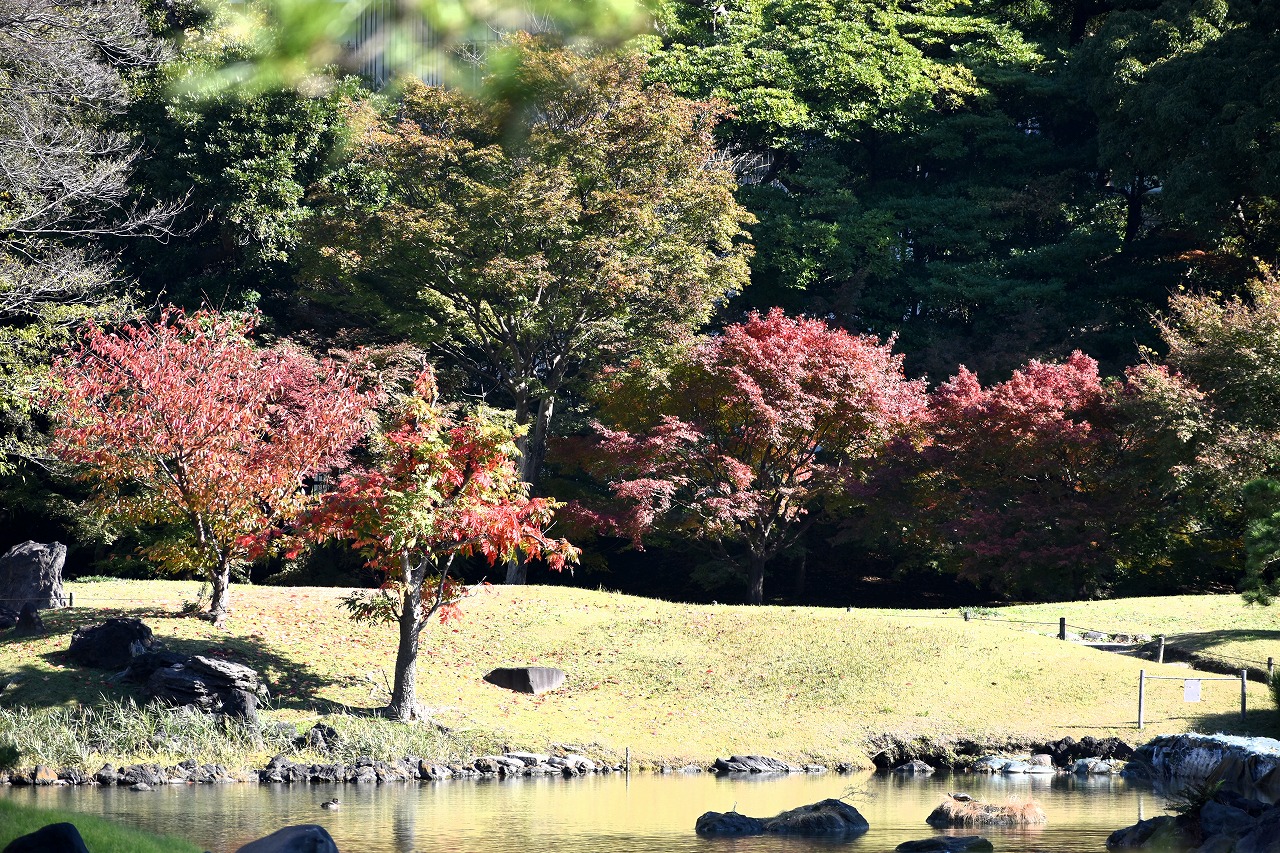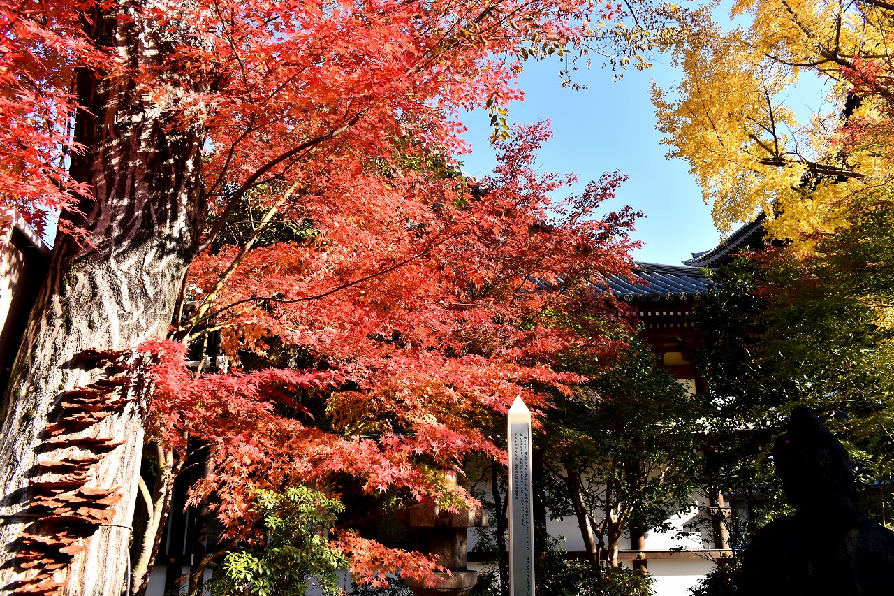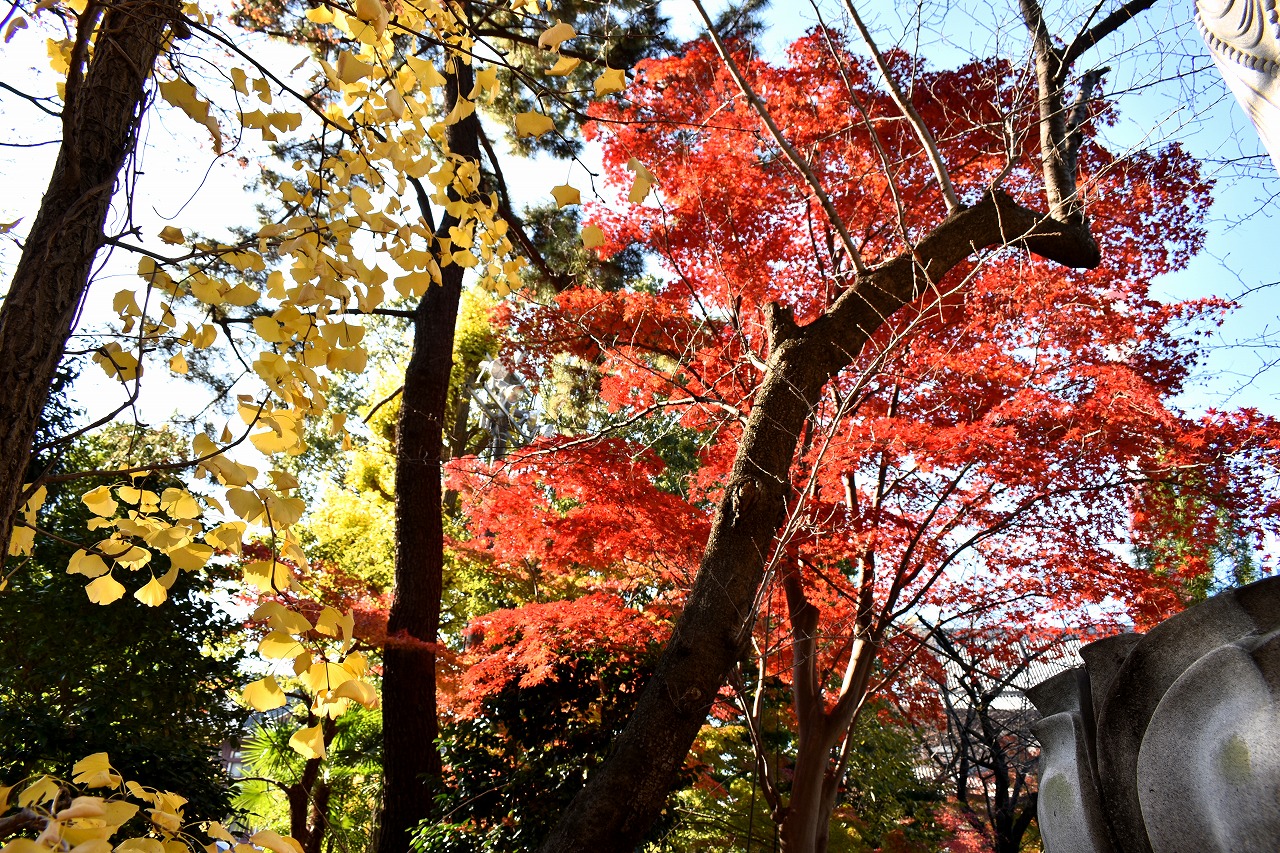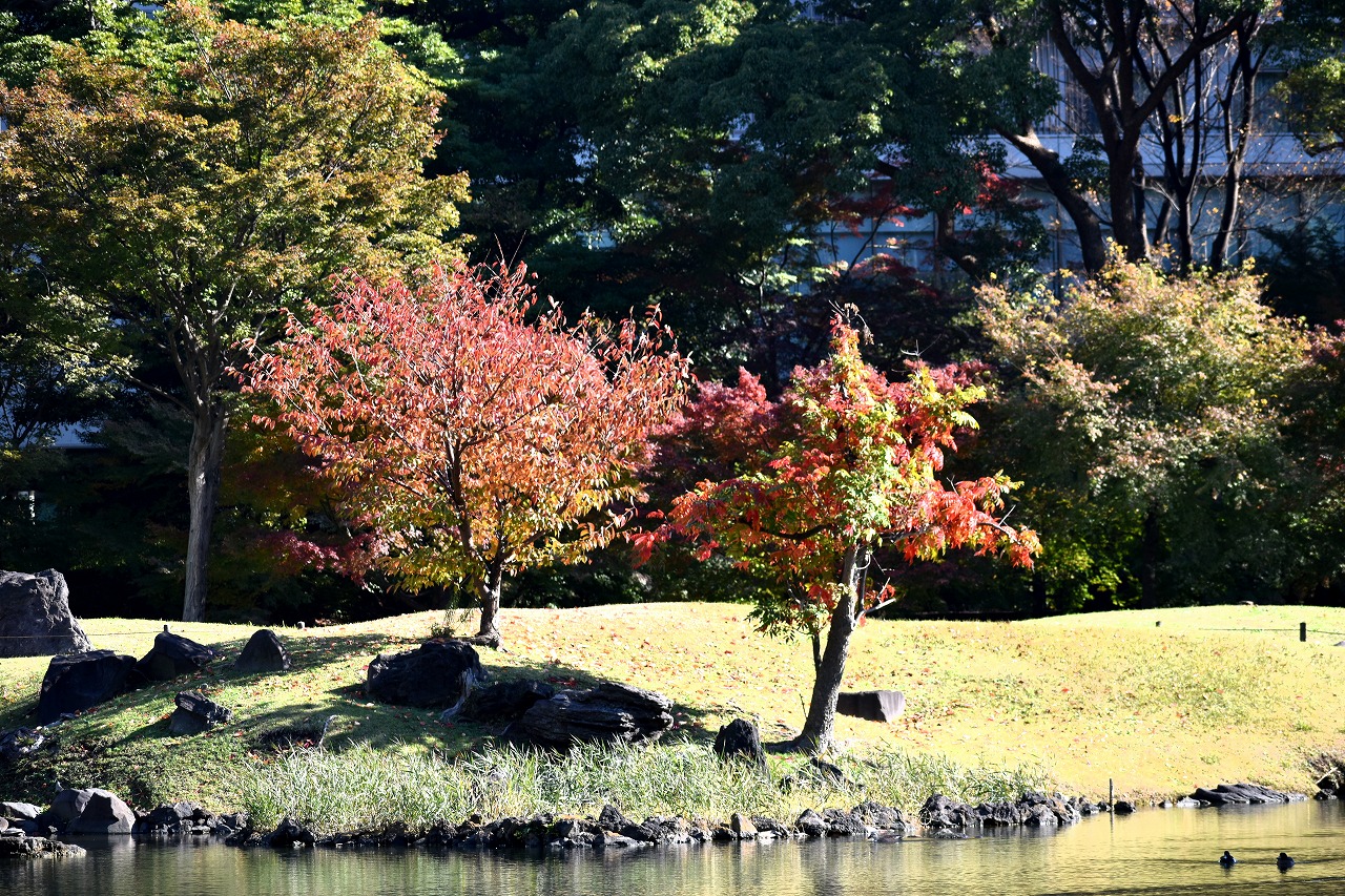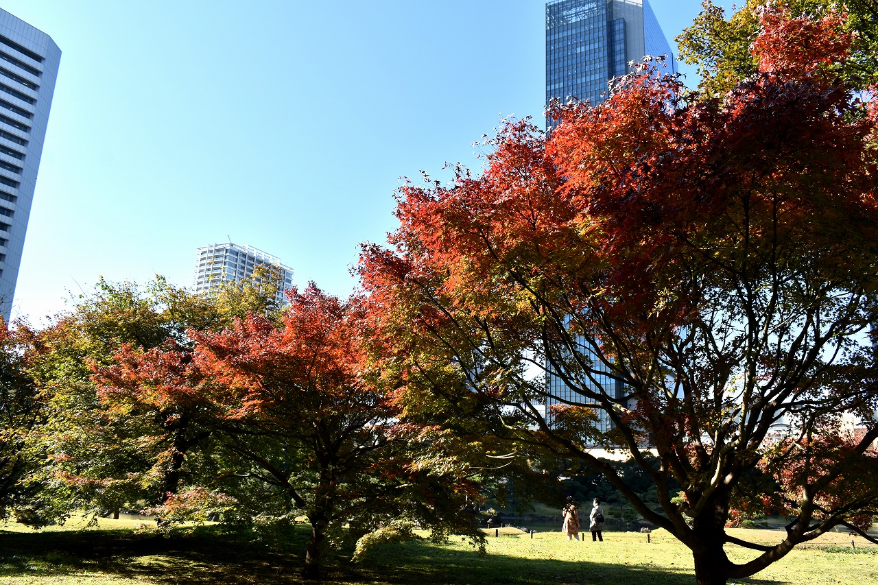 「一言」芝公園の大きなイチョウの木が黄葉して綺麗になっています。イチョウの葉が透けるような黄色になり華やかです。 旧芝離宮の紅葉も進んでいます。十月桜が満開になっています。鴨やサギが池に飛んできています。 増上寺の紅葉が綺麗です。本堂の前や裏、増上寺会館にあるモミジが真っ赤に紅葉しています。