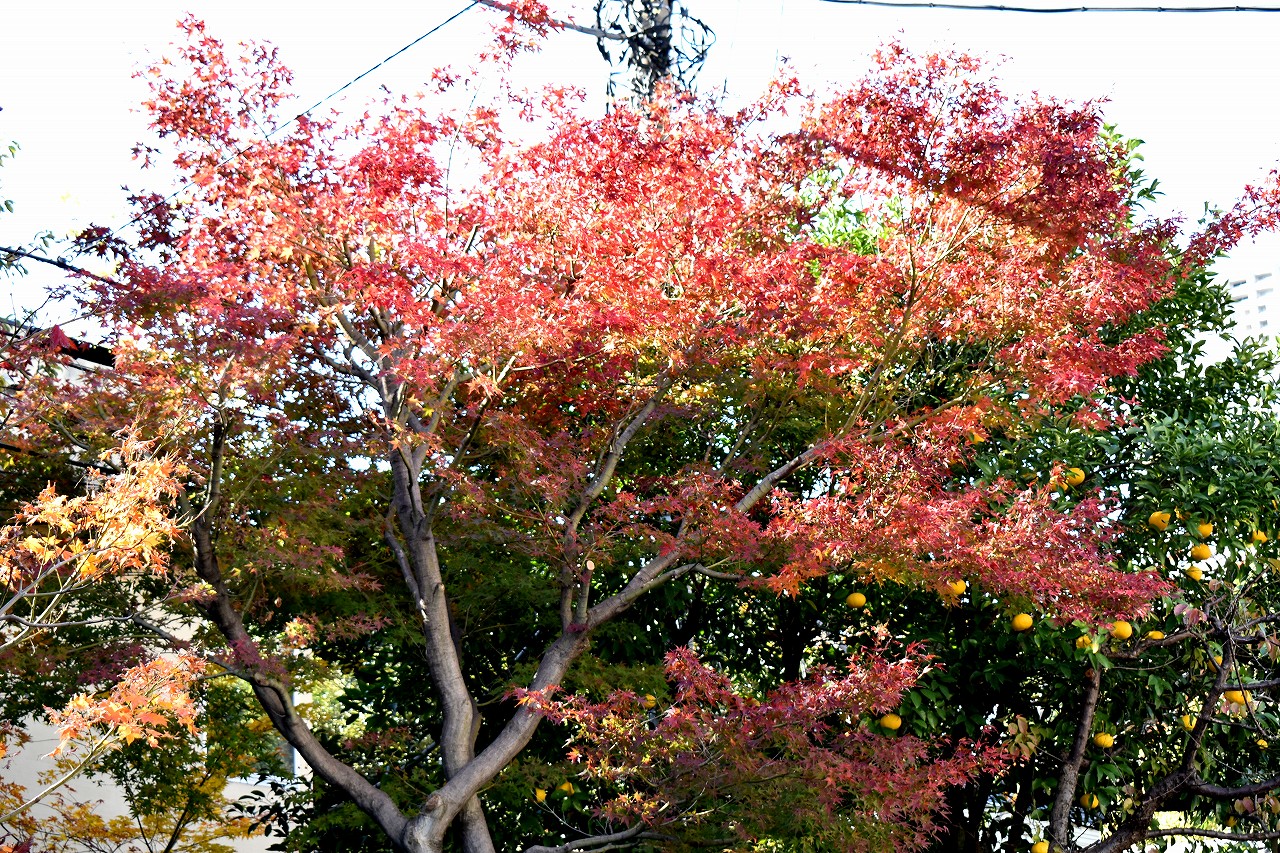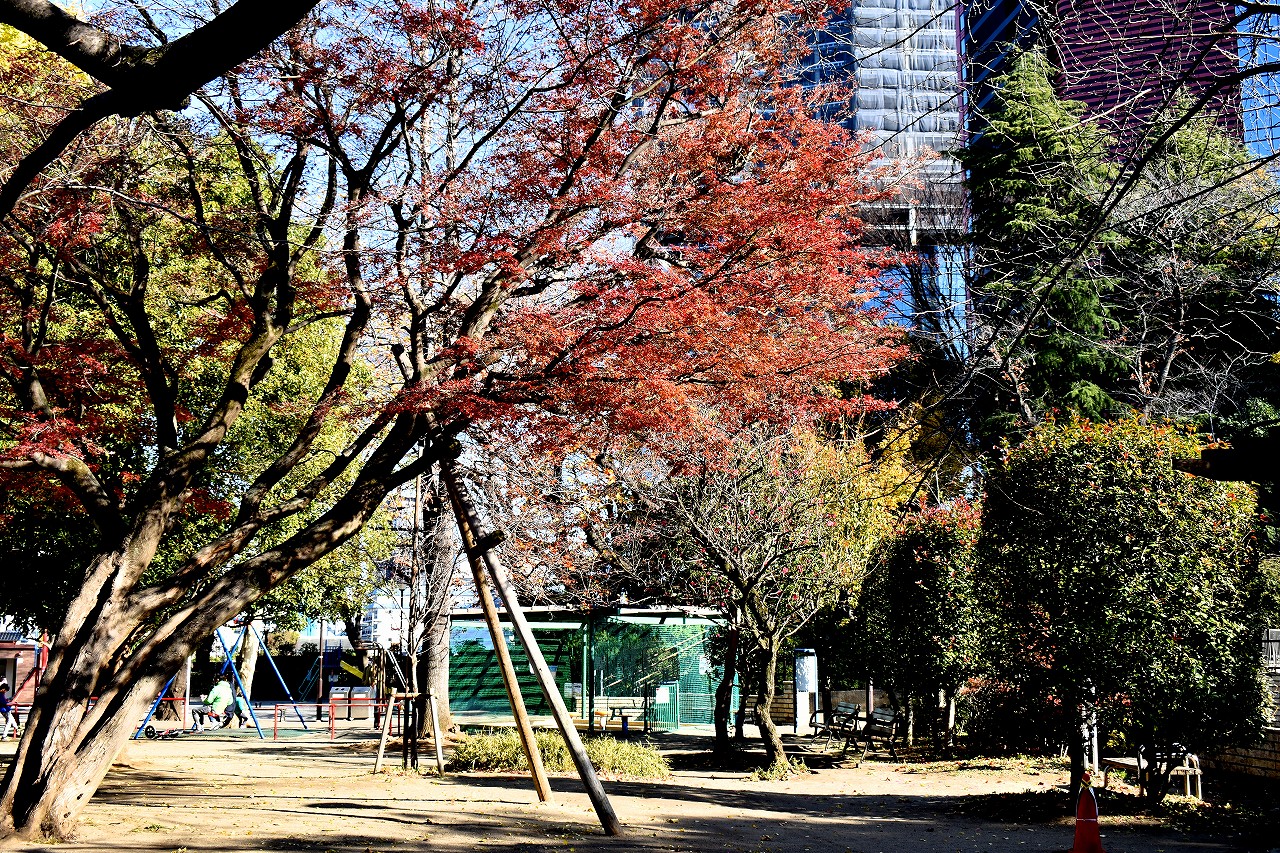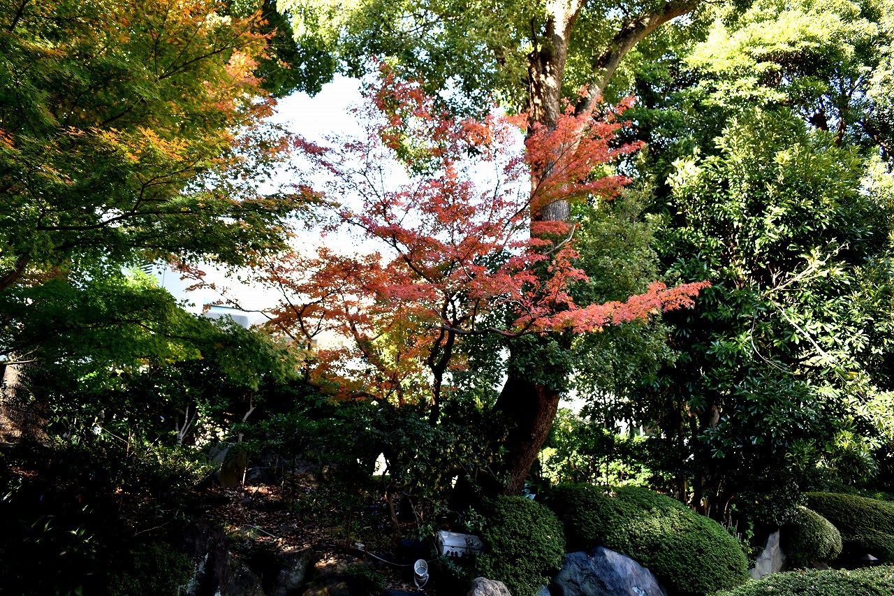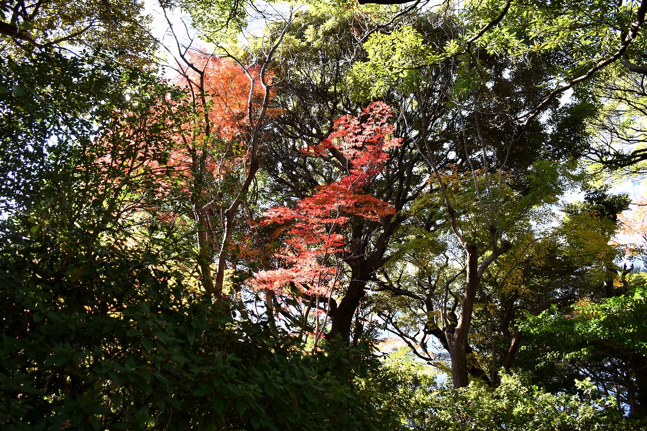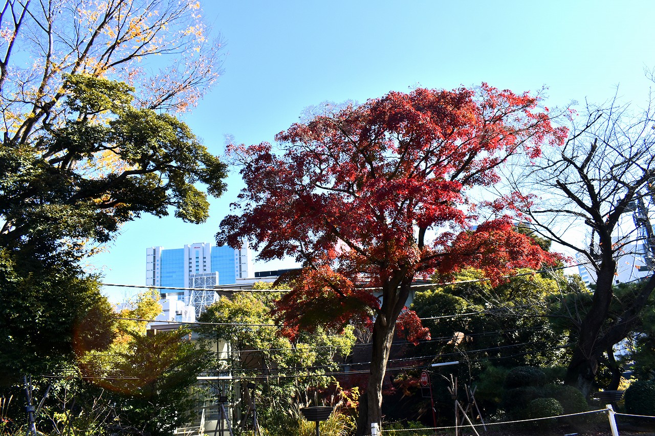 「一言」高輪プリンスホテルの庭園の紅葉が見頃になっています。庭園にはたくさんのモミジが植えられていて綺麗です。