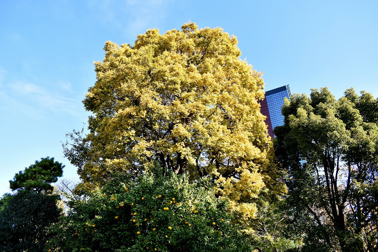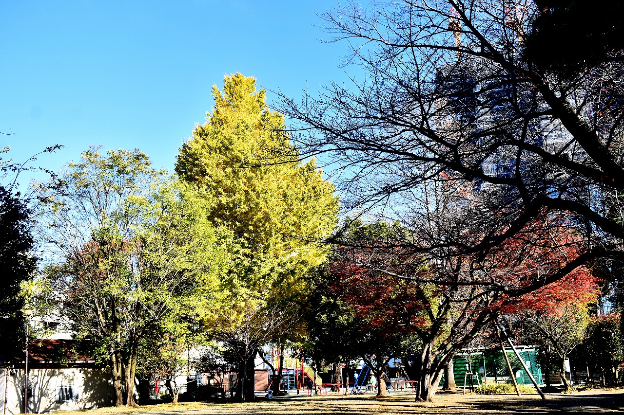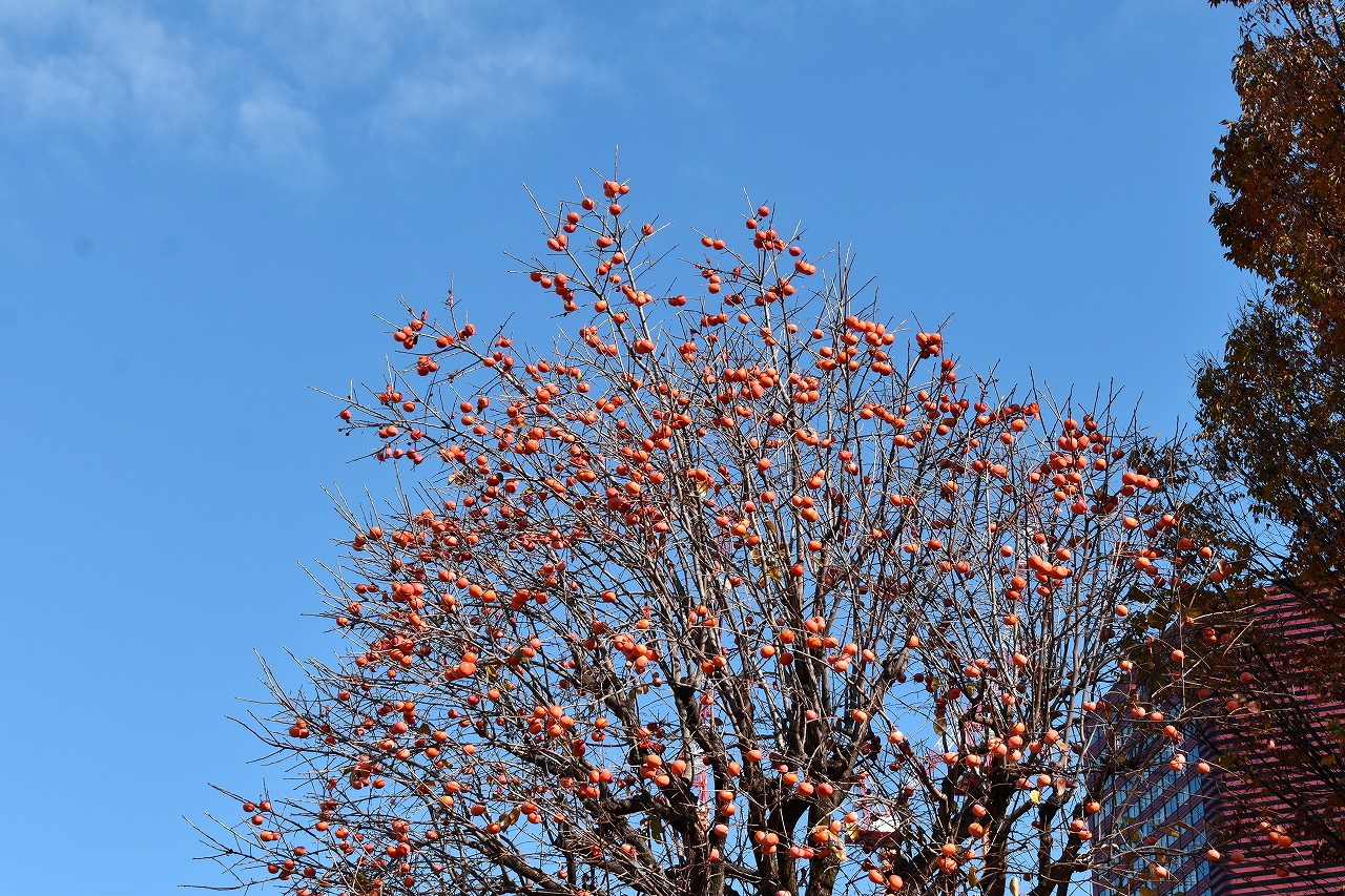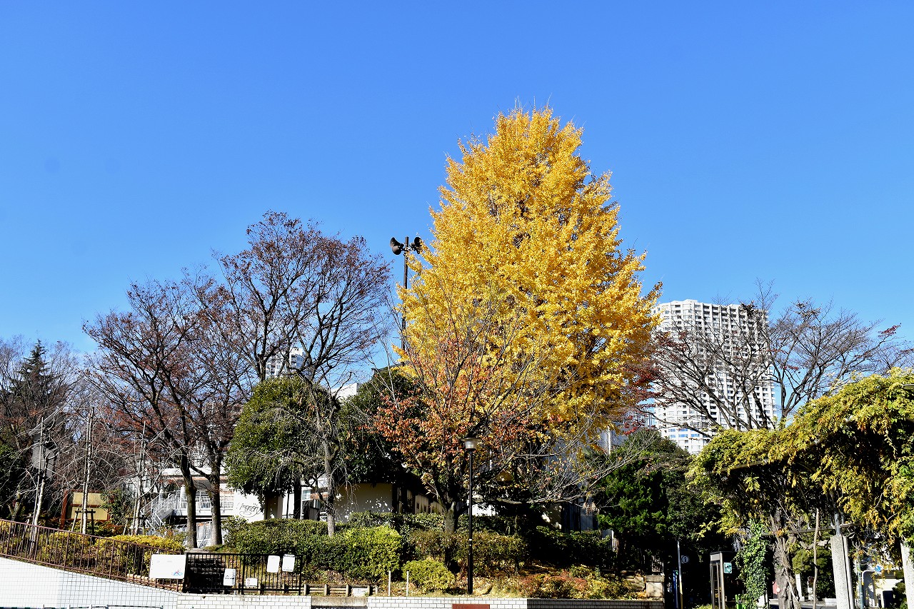 亀塚公園や三田台児童遊園には柿の実がたくさんなっています。メジロが来ています。覚林寺や高輪公園などのイチョウ