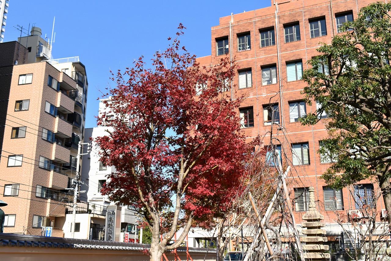 が黄葉しています。高野山東京別院や證誠寺、正山寺などでは紅葉しています。