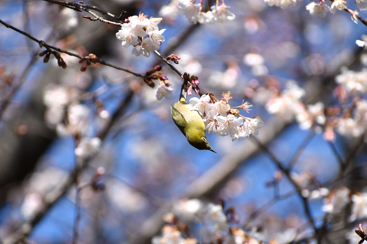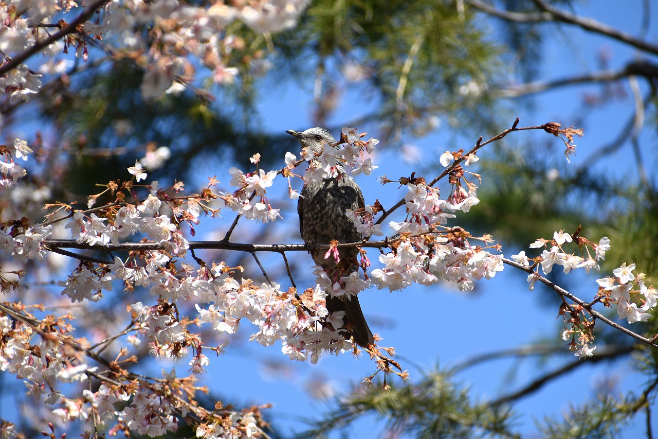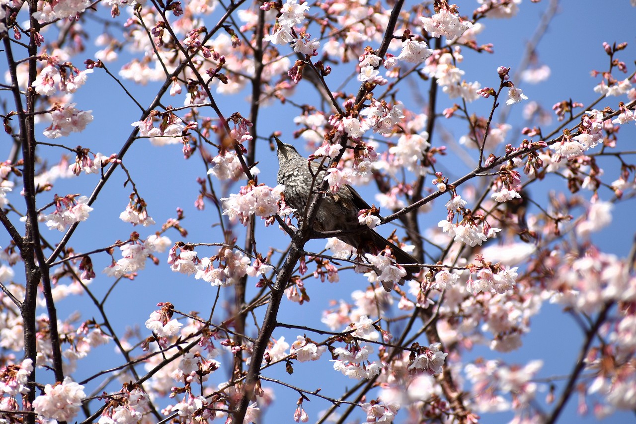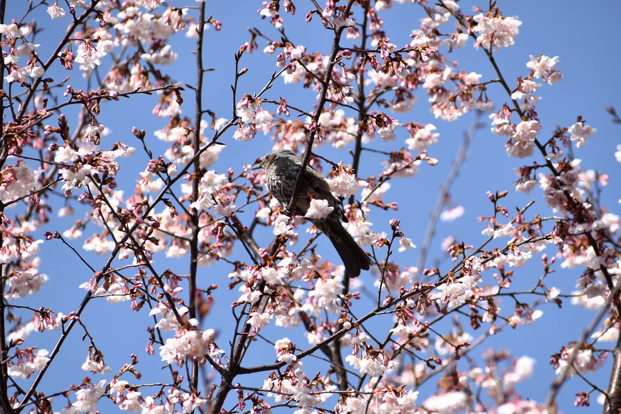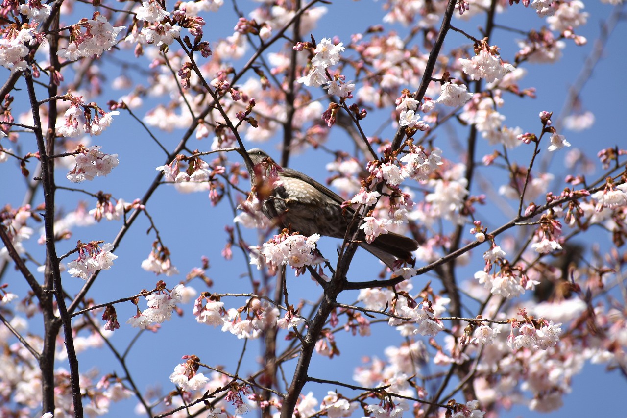 実相寺の早咲きの桜が満開になり、メジロが少なくなり、ヒヨドリやムクドリが増えています。高輪プリンスホテルの