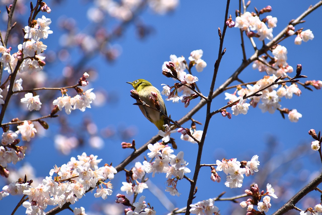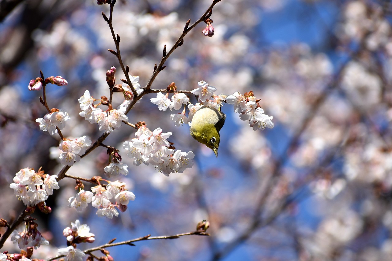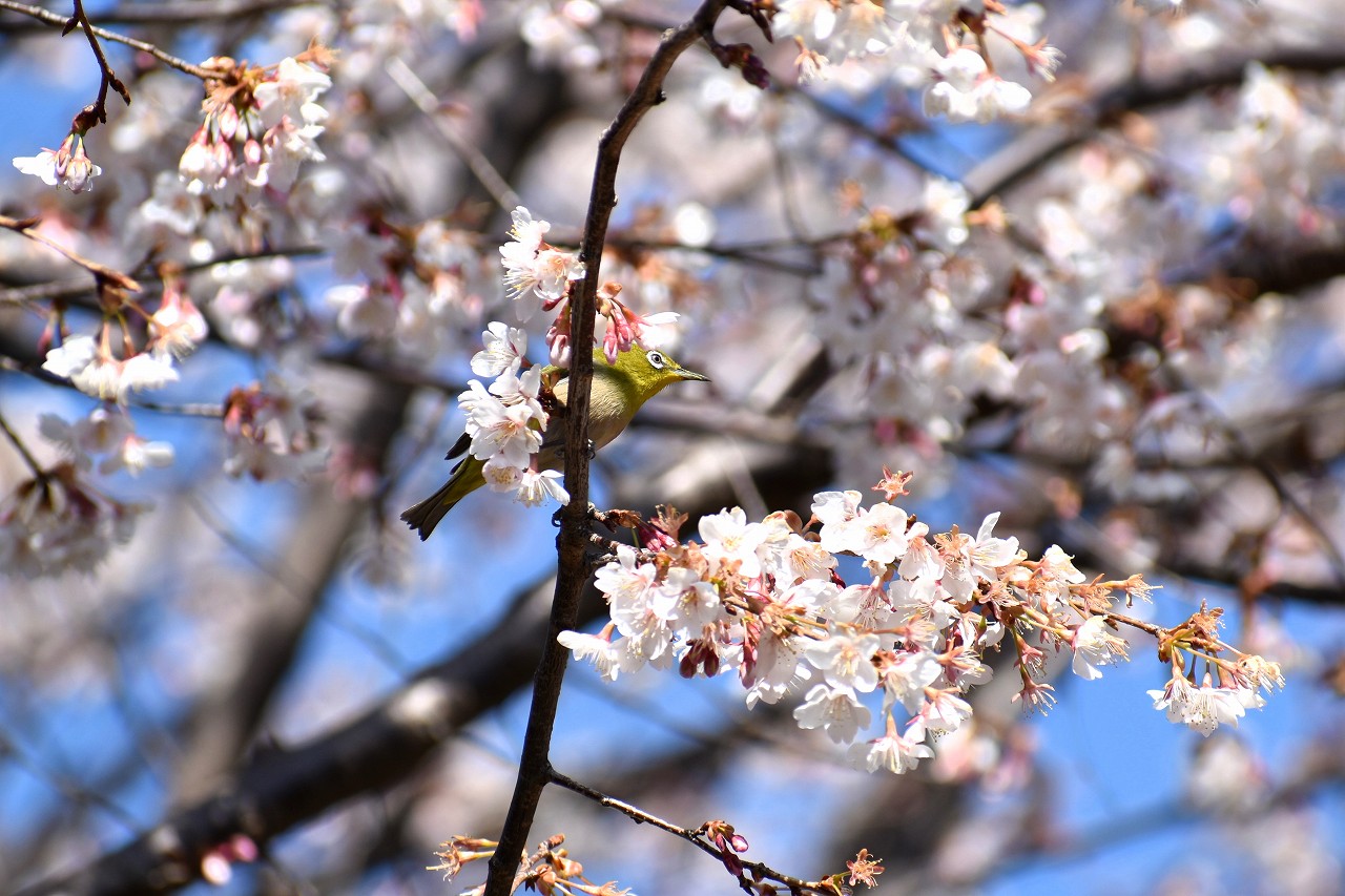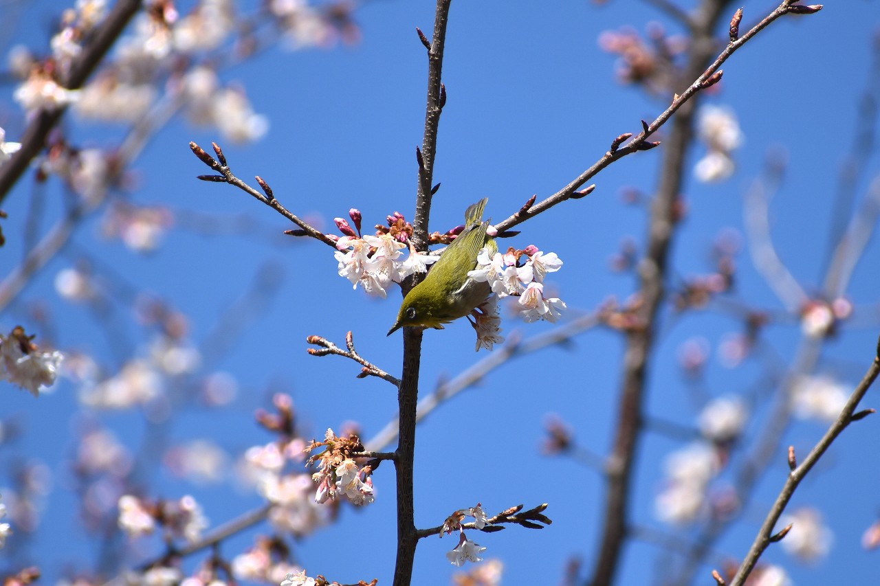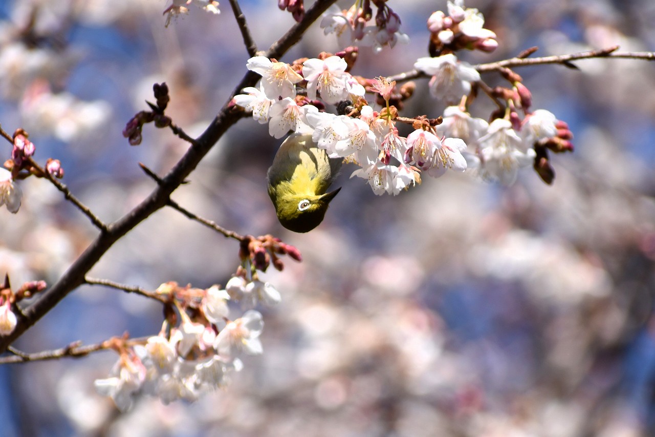 実相寺の早咲きの桜が満開になり、メジロが少なくなり、ヒヨドリやムクドリが増えています。高輪プリンスホテルの