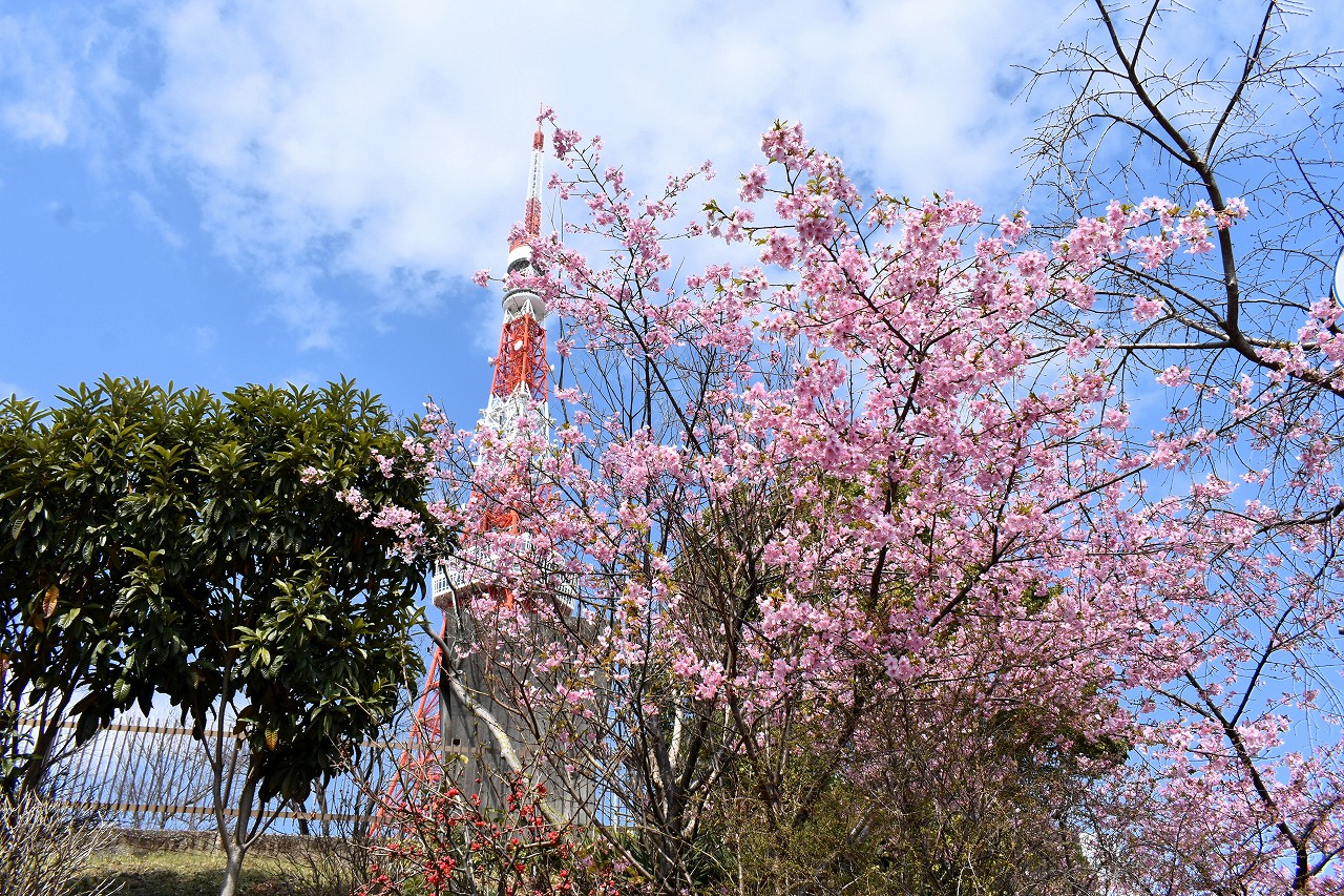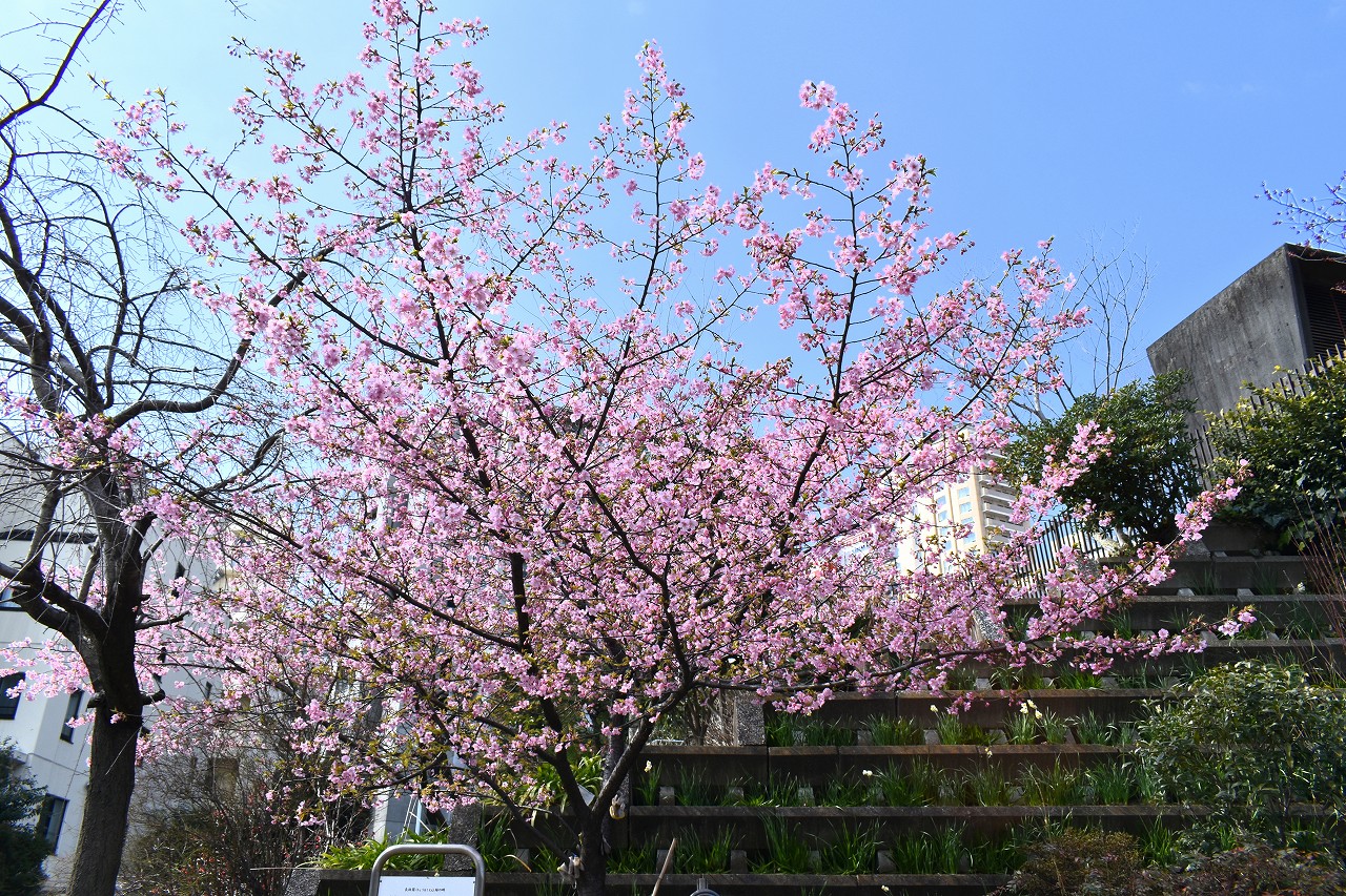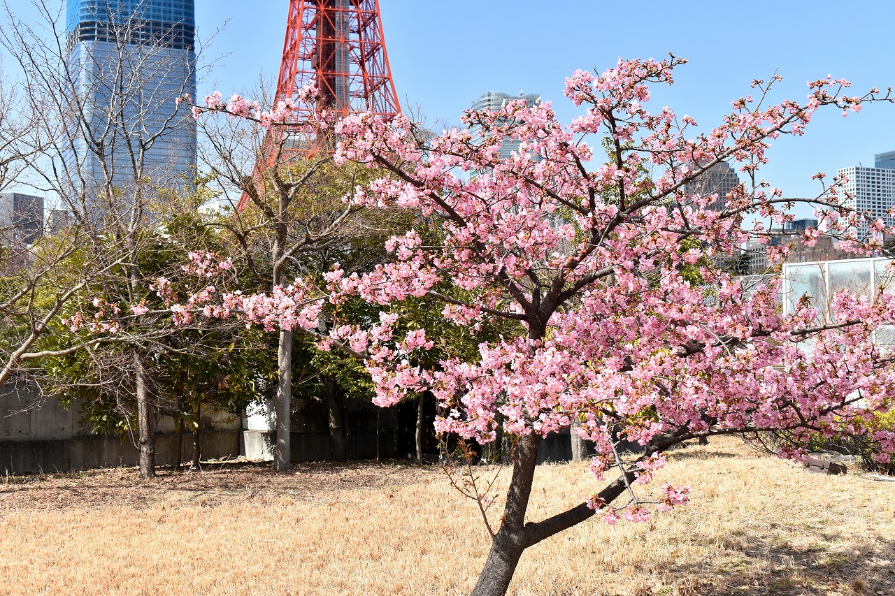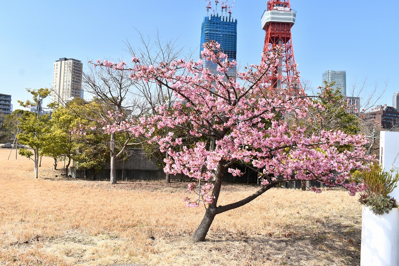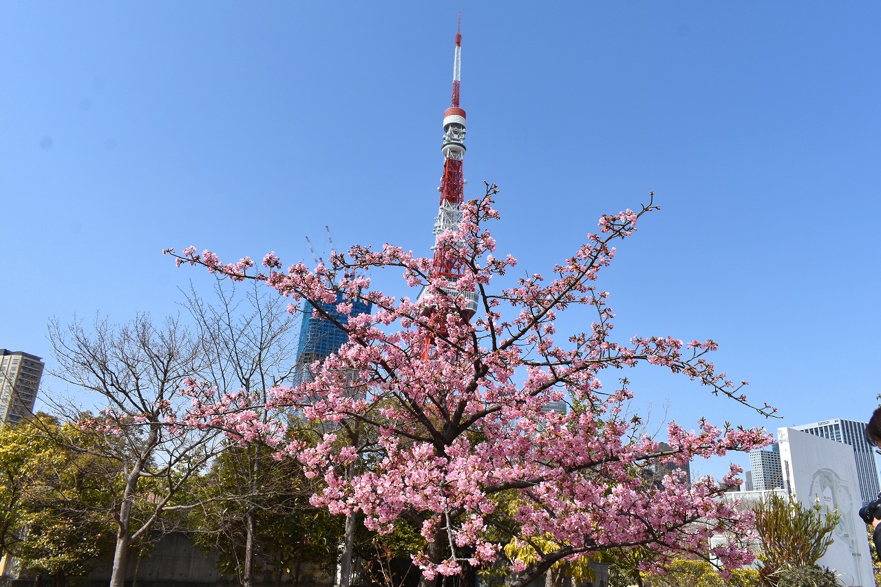 「一言」長柏園跡やプリンス芝公園の河津桜が見頃になり、綺麗です。芝公園には紅白の梅の花が咲き銀世界の様子です。