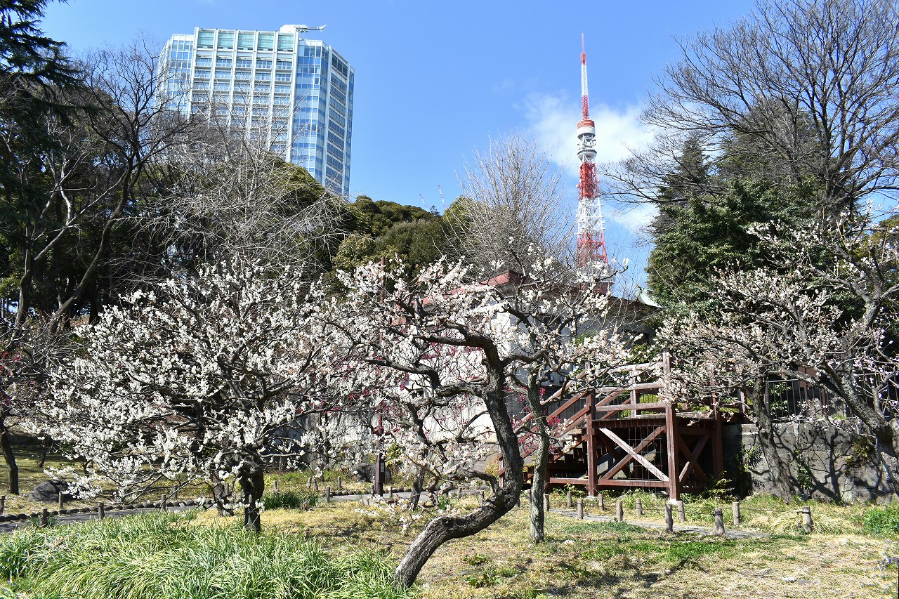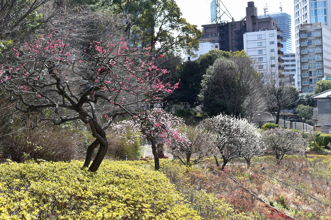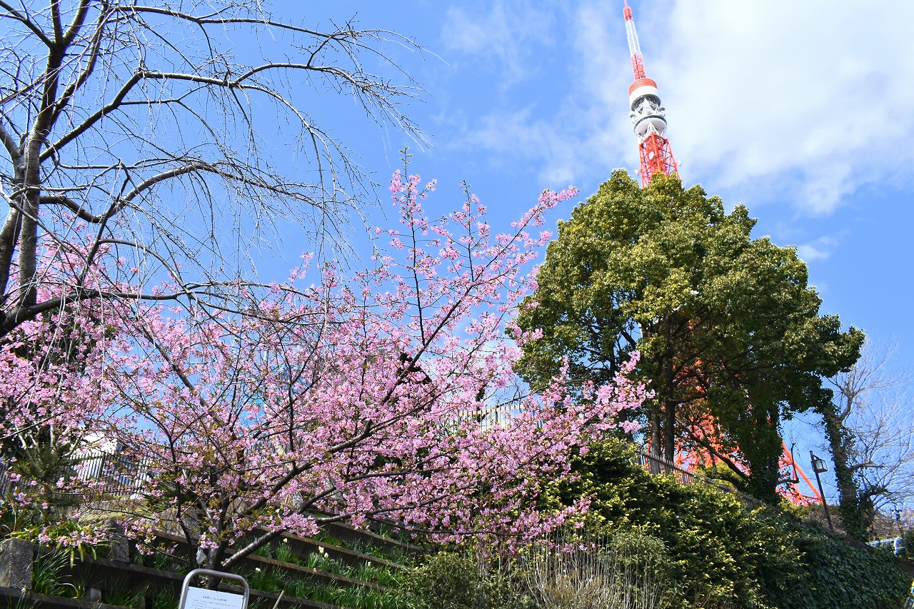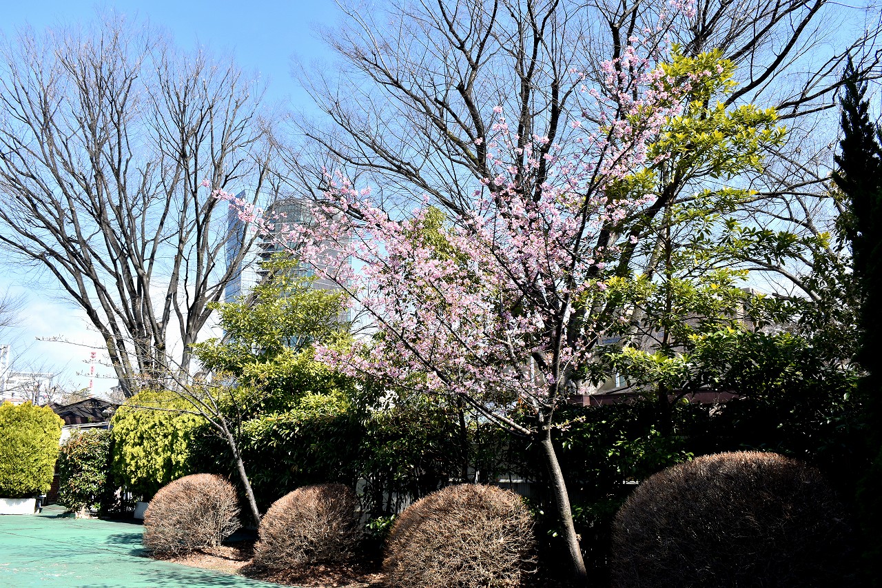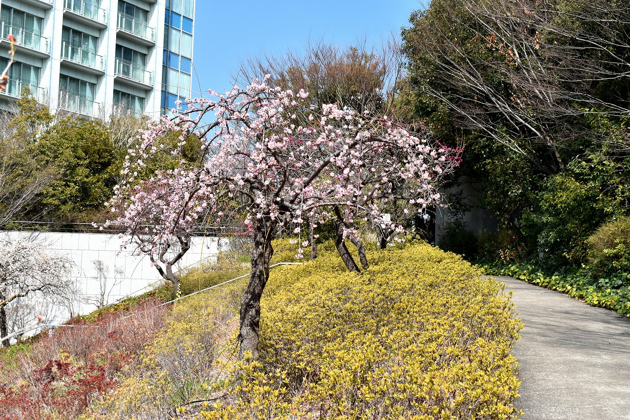 「一言」長柏園跡やプリンス芝公園の河津桜が見頃になり、綺麗です。芝公園には紅白の梅の花が咲き銀世界の様子です。