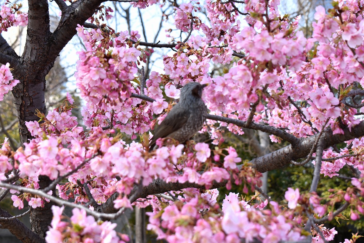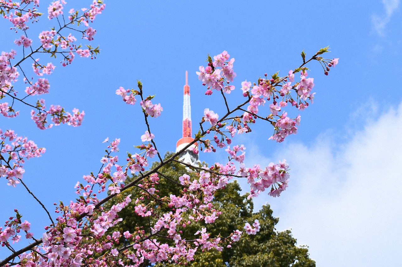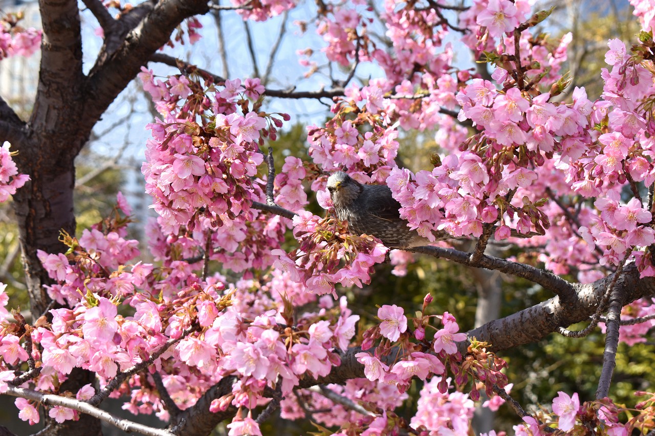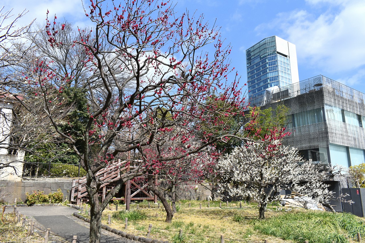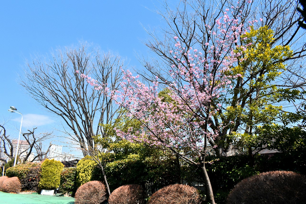 「一言」長柏園跡やプリンス芝公園の河津桜が見頃になり、綺麗です。芝公園には紅白の梅の花が咲き銀世界の様子です。