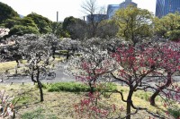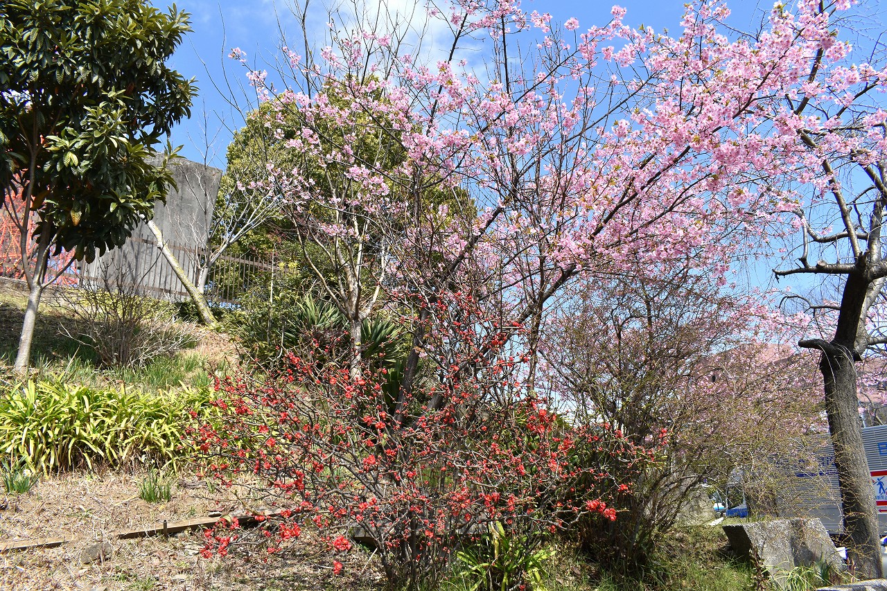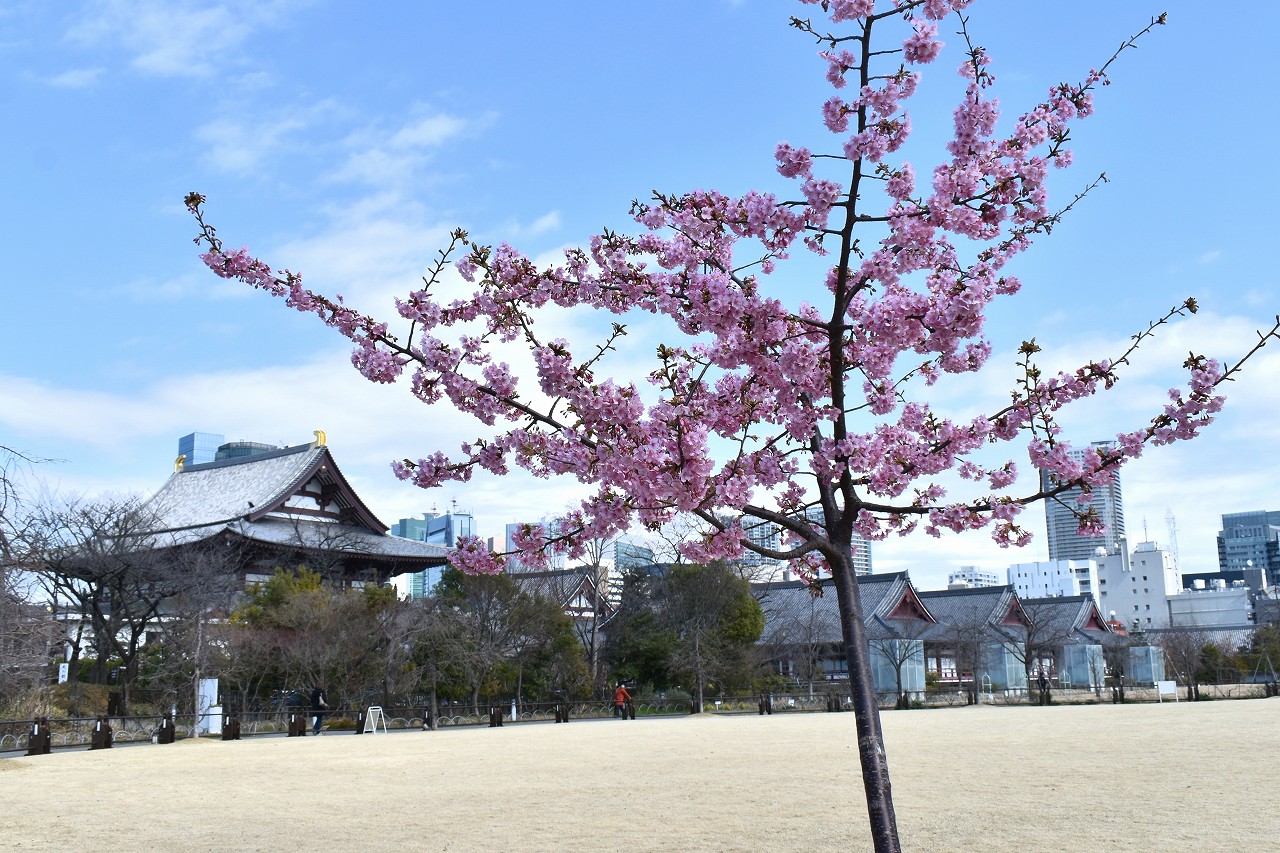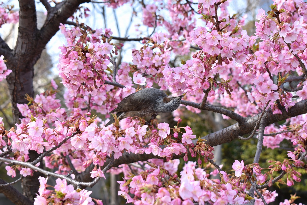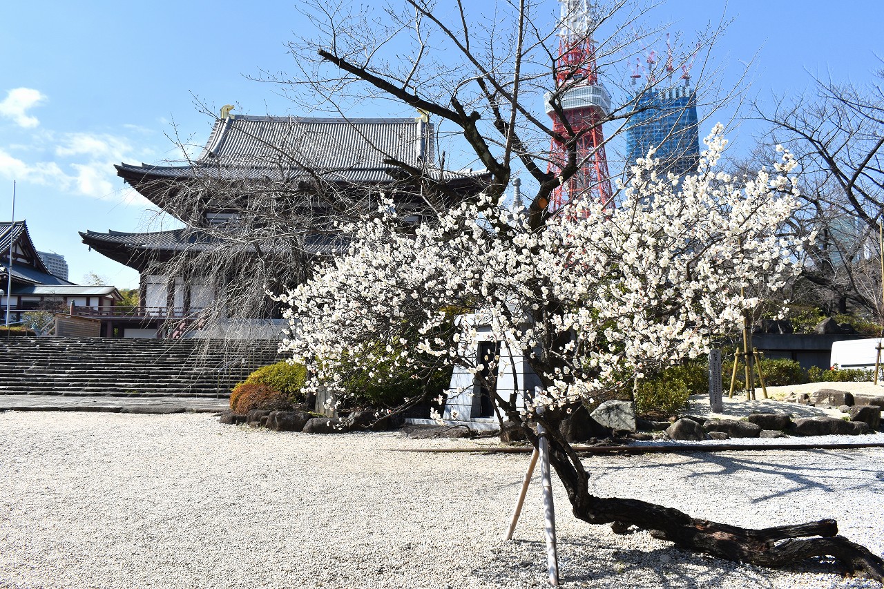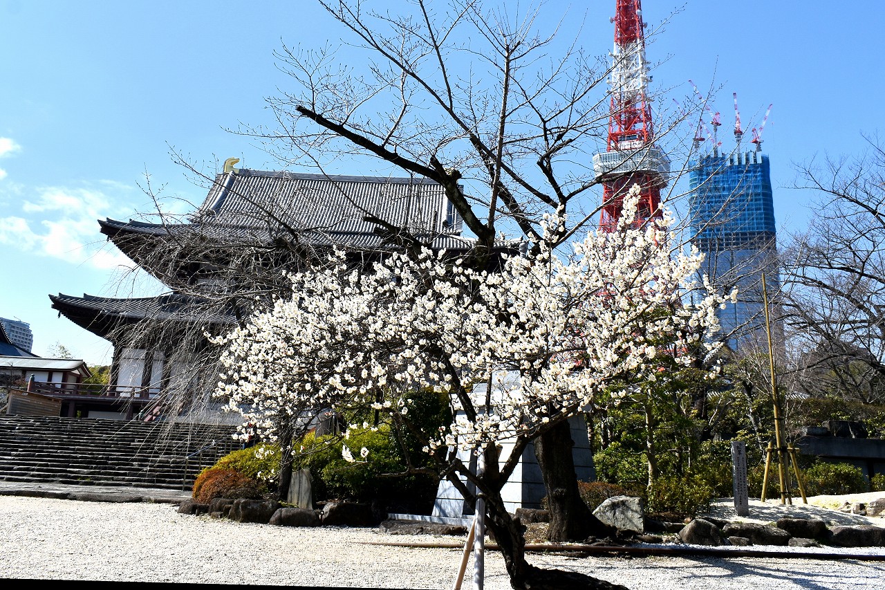 「一言」長柏園跡やプリンス芝公園の河津桜が見頃になり、綺麗です。芝公園には紅白の梅の花が咲き銀世界の様子です。